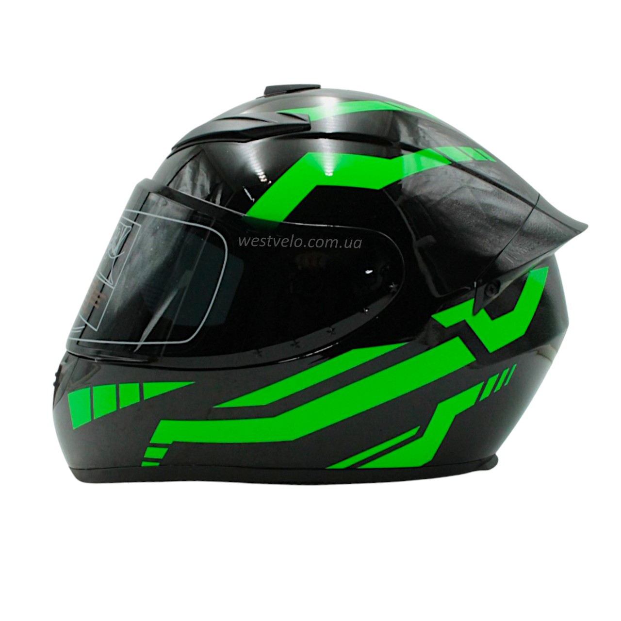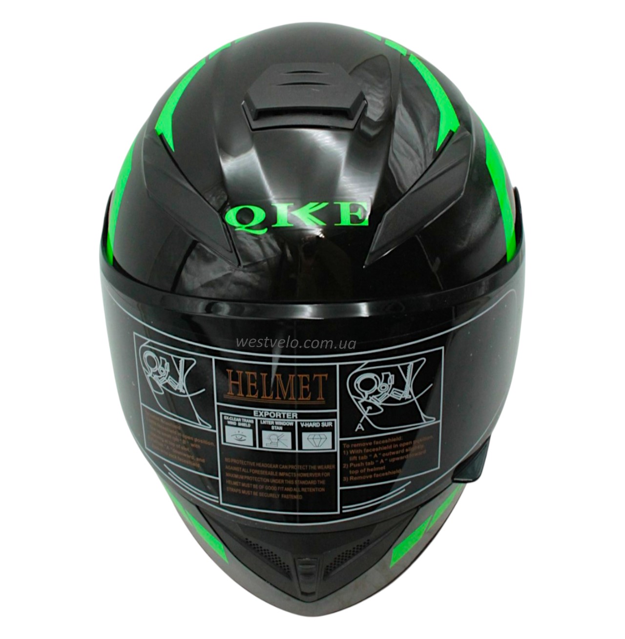 Мото шолом, закритий (L) QIKE Dot "216" чорно-зелений, глянцевий