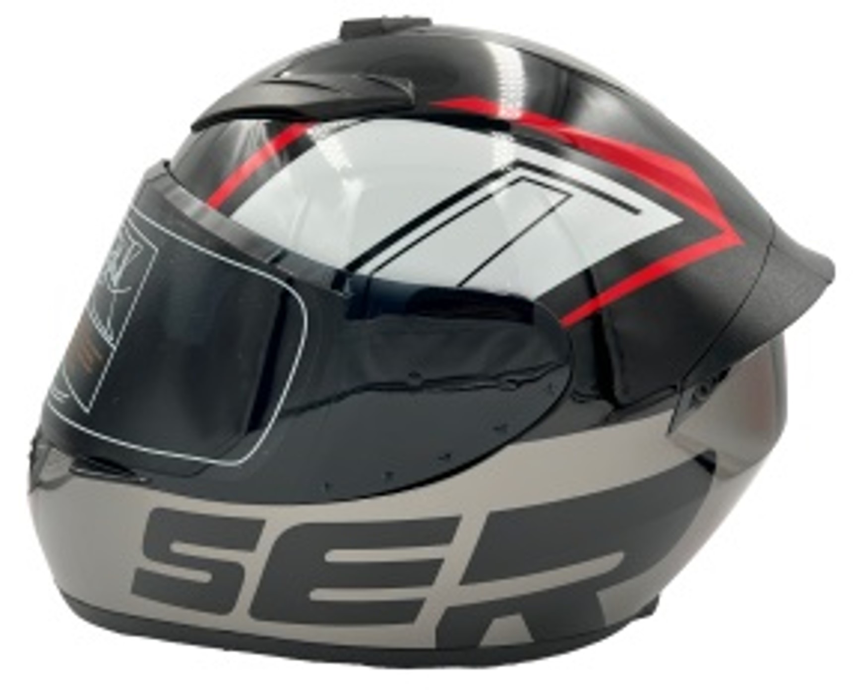 Мото шолом, закритий (L) QIKE Ser "217" чорно-сіро-червоний, глянцевий