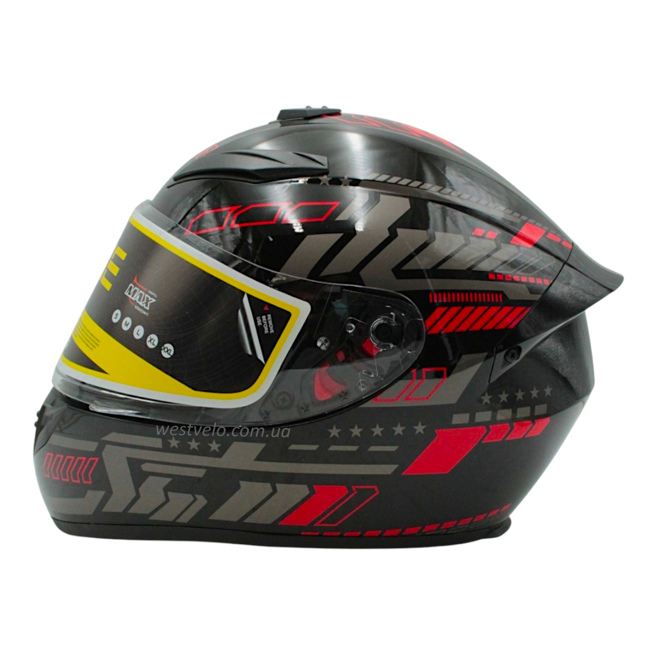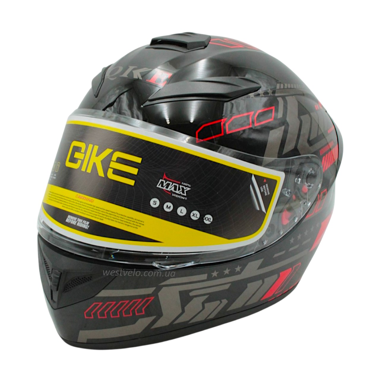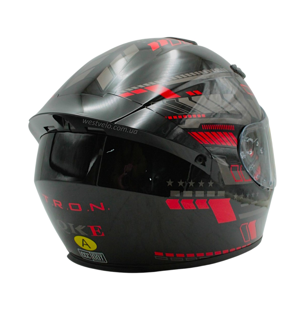 Мото шолом, закритий (L) QIKE TRON "1015-3" чорно-сіро-червоний, глянцевий