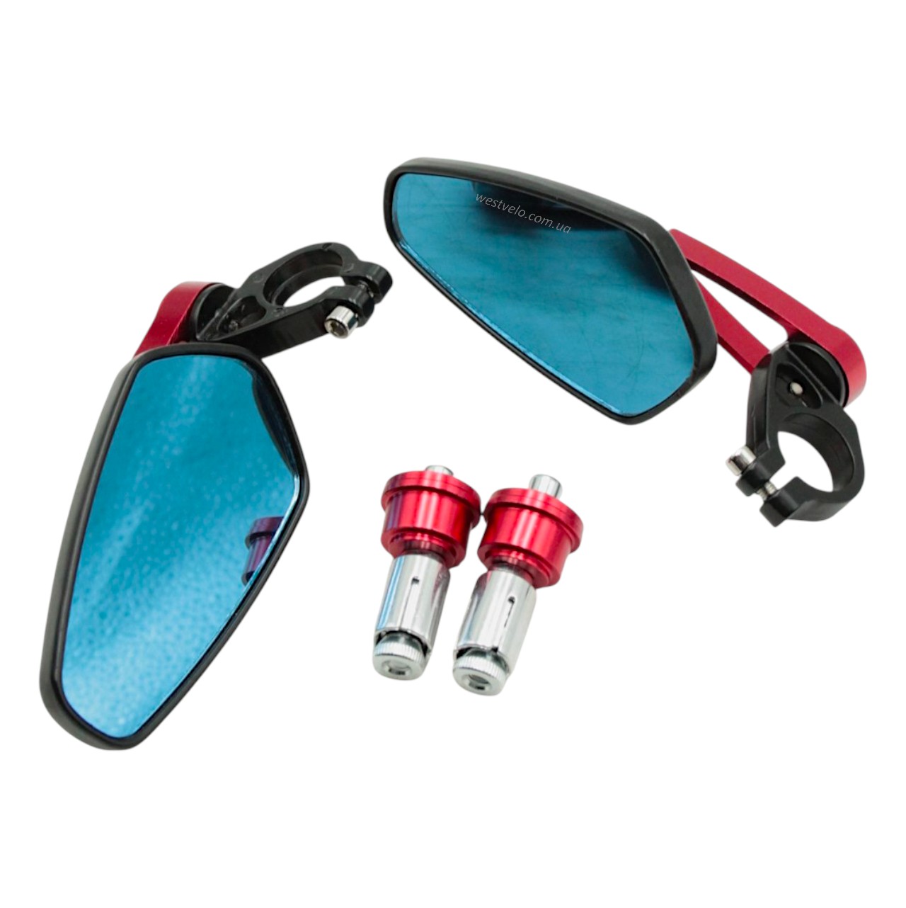 Дзеркало заднього виду, в руль, алюміній, стрілоподібні D13/17' CUSTOM' червоні