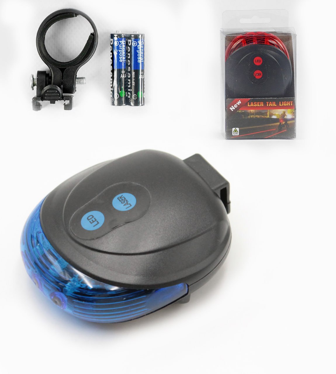 Мигалка + лазер на батарейках зад №681 DW-681 синя + батарейки (238)