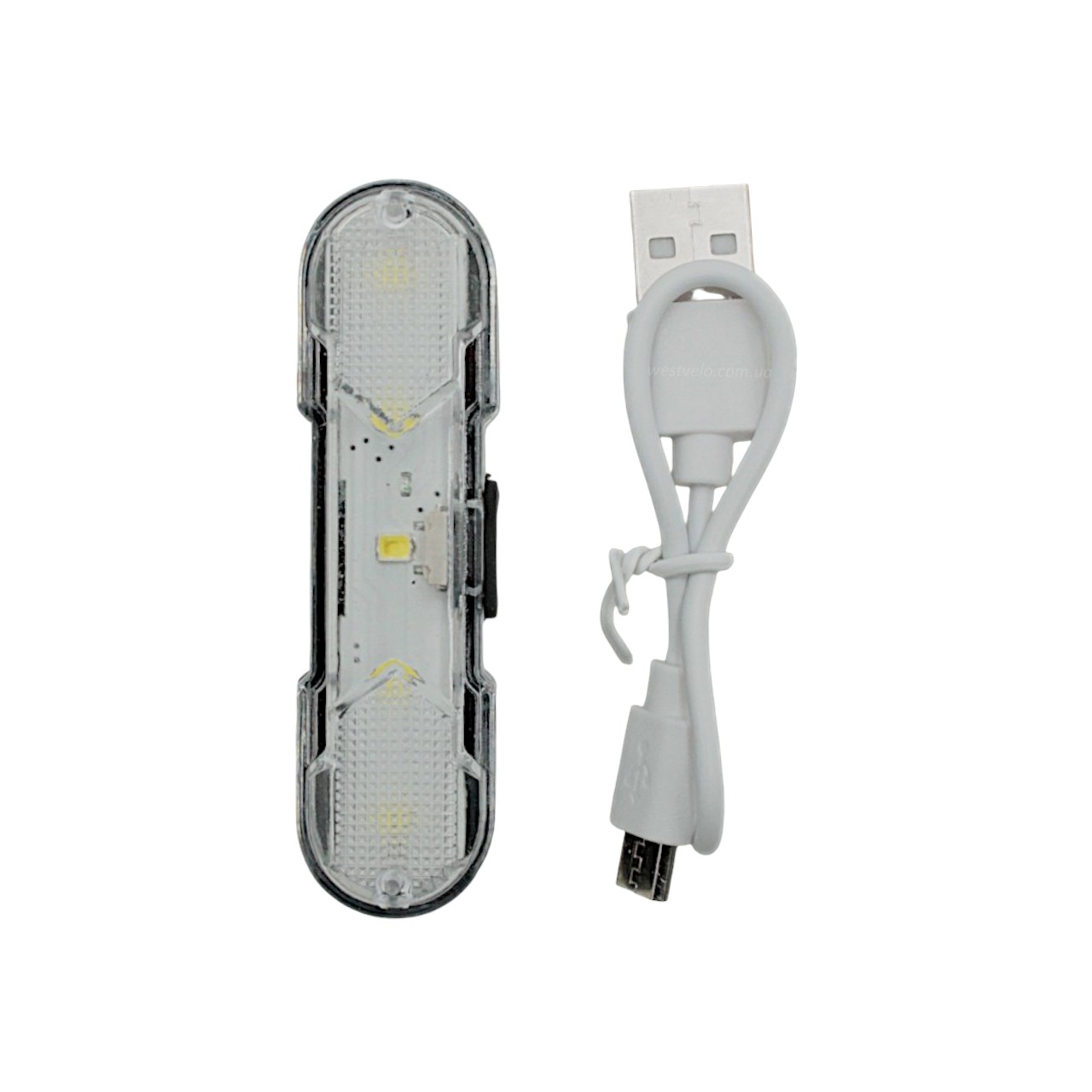 Мигалка на usb зарядку зад AS1010, з акумулятором, біла (365)