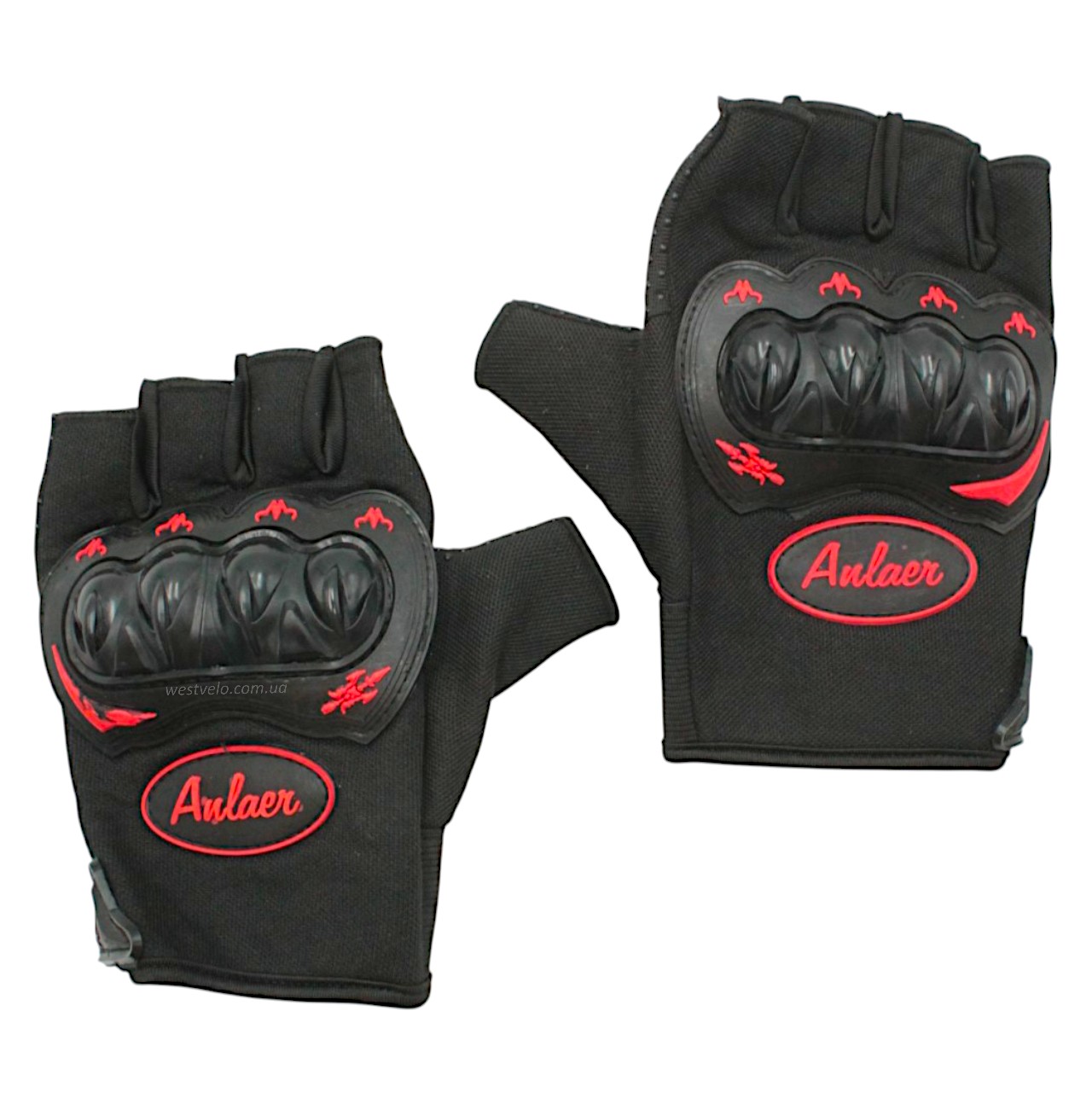 Рукавиці (тактичні) Anlaer, чорно-червоні (з відкритими пальцями)
