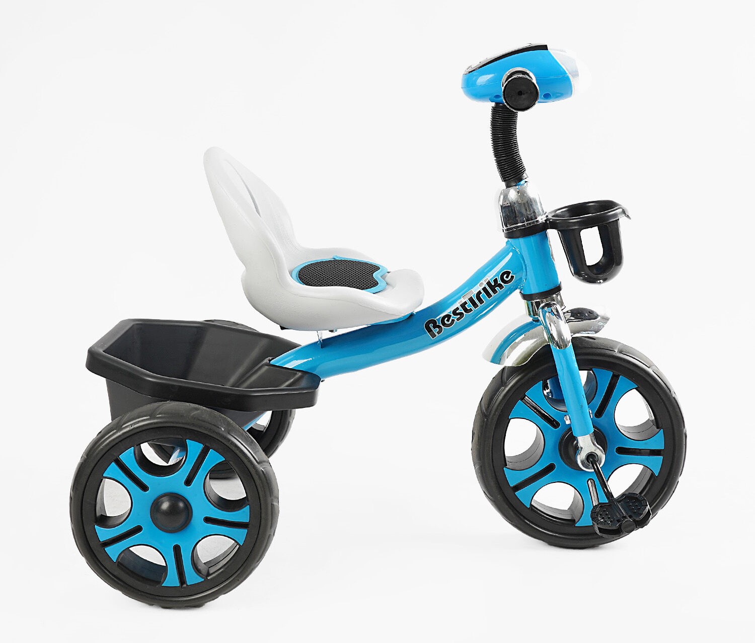 Дитячий велосипед 3-х колісний EVA (піна) Best Trike колеса 12-10, BS-24513 блакитний, сталева рама, фара з музикою та світлом, кошик