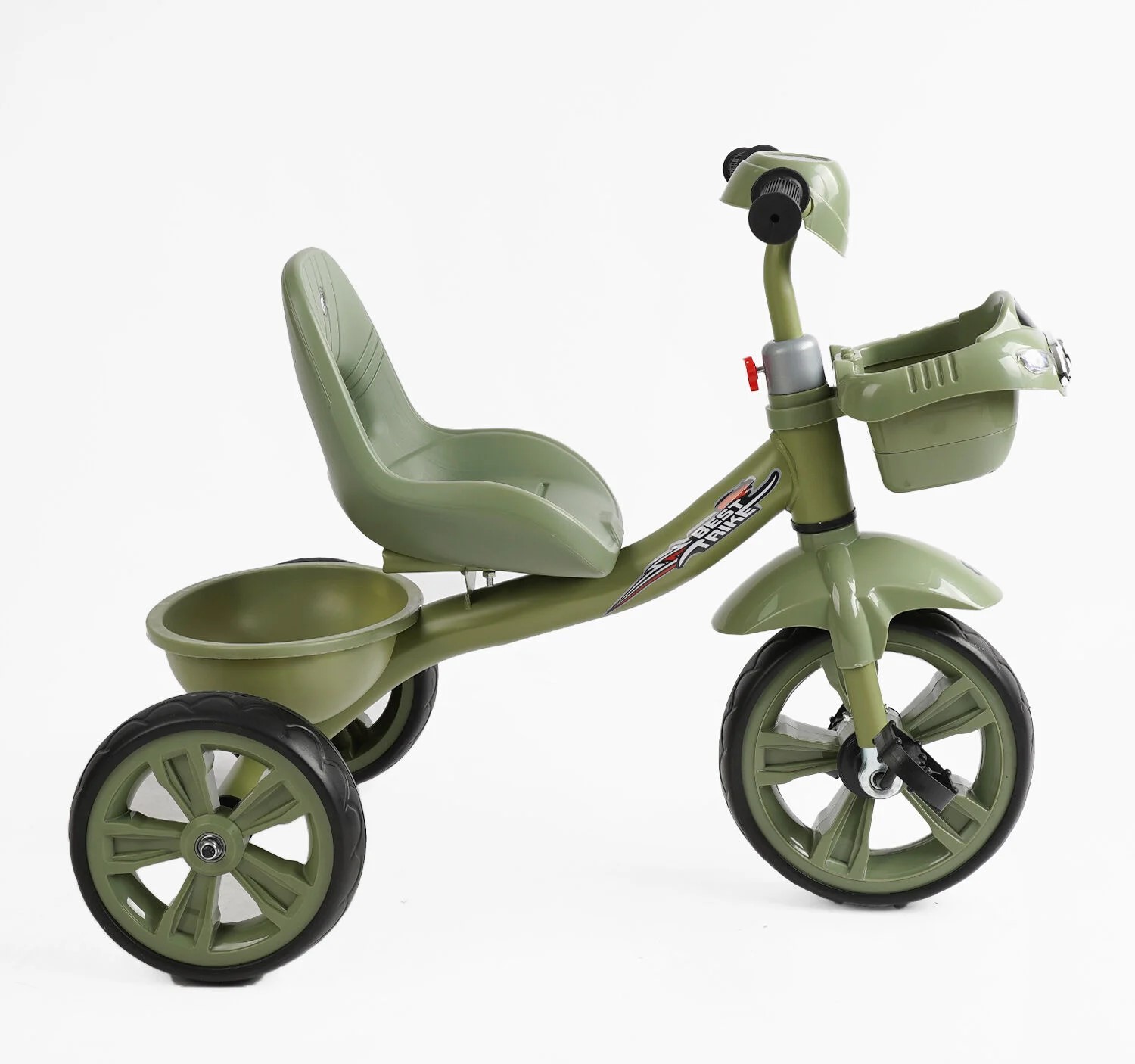 Дитячий велосипед 3-х колісний EVA (піна) Best Trike колеса 10-8, «Машинка» BS-60417 хакі, сталева рама, УКР.ОЗВУЧУВАННЯ, кошик