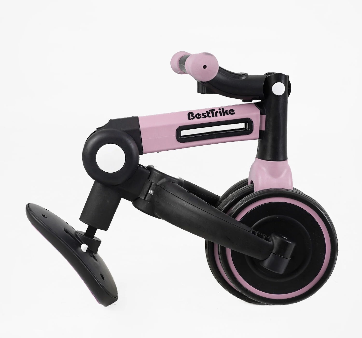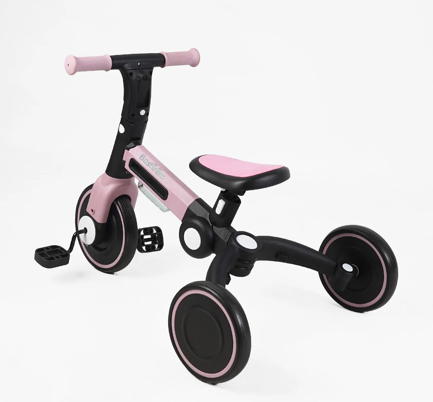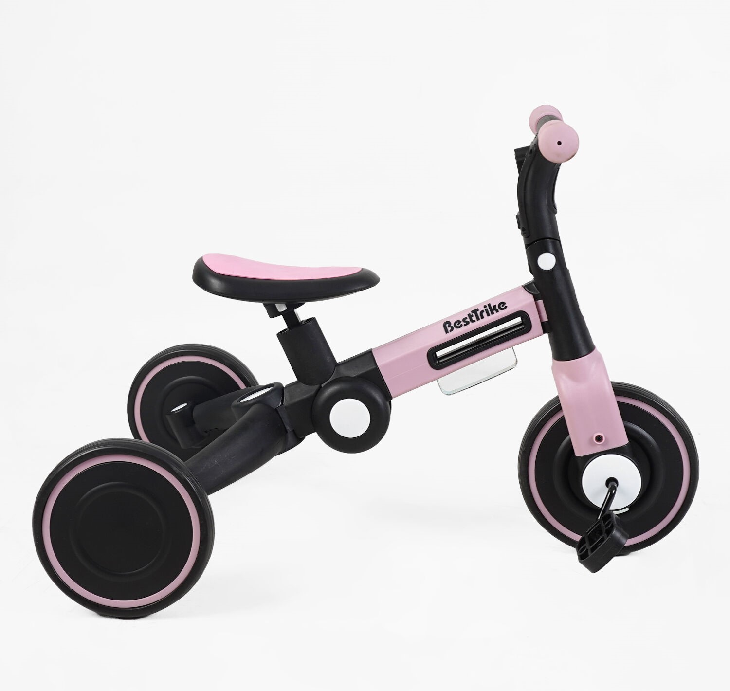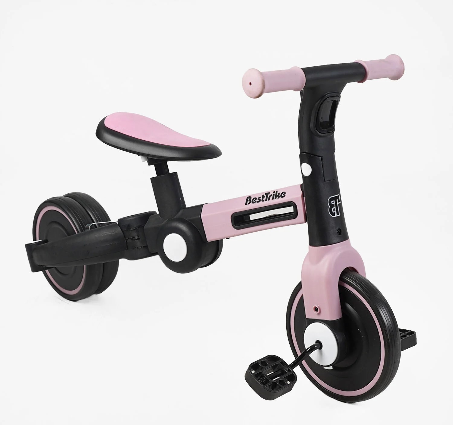 Дитячий велосипед 3-х колісний EVA (піна) Best Trike колеса 8-6, BS-11402 рожевий, нейлонова рама, рама та задні колеса -складні, підсвічування, кошик