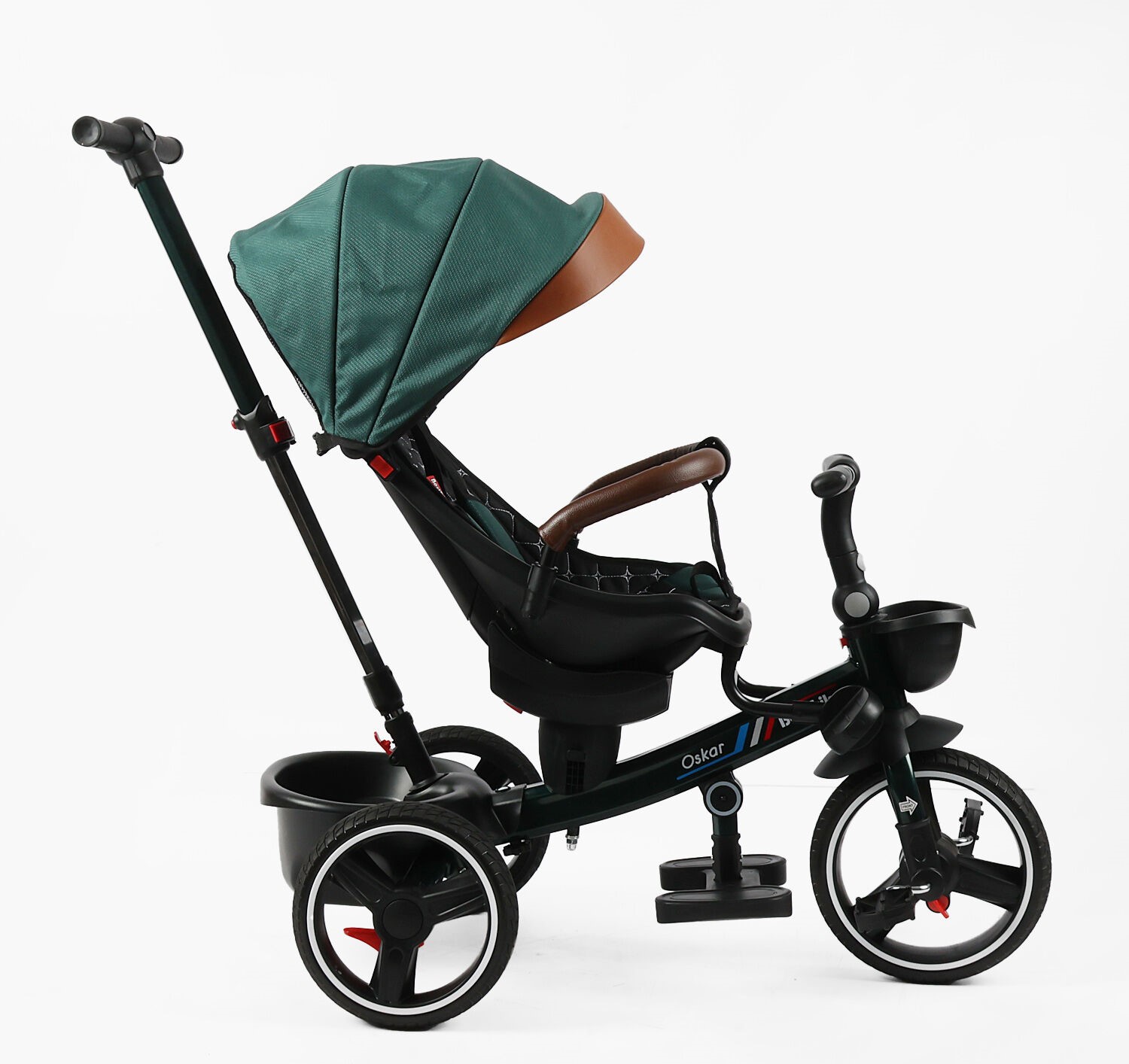 Дитячий велосипед 3-кол з батьківською ручкою, з даш, PU BestTrike «OSCAR» 6390/14-154 бірюзовий, поворотне сидіння, складне кермо, кошик, телескопічна ручка
