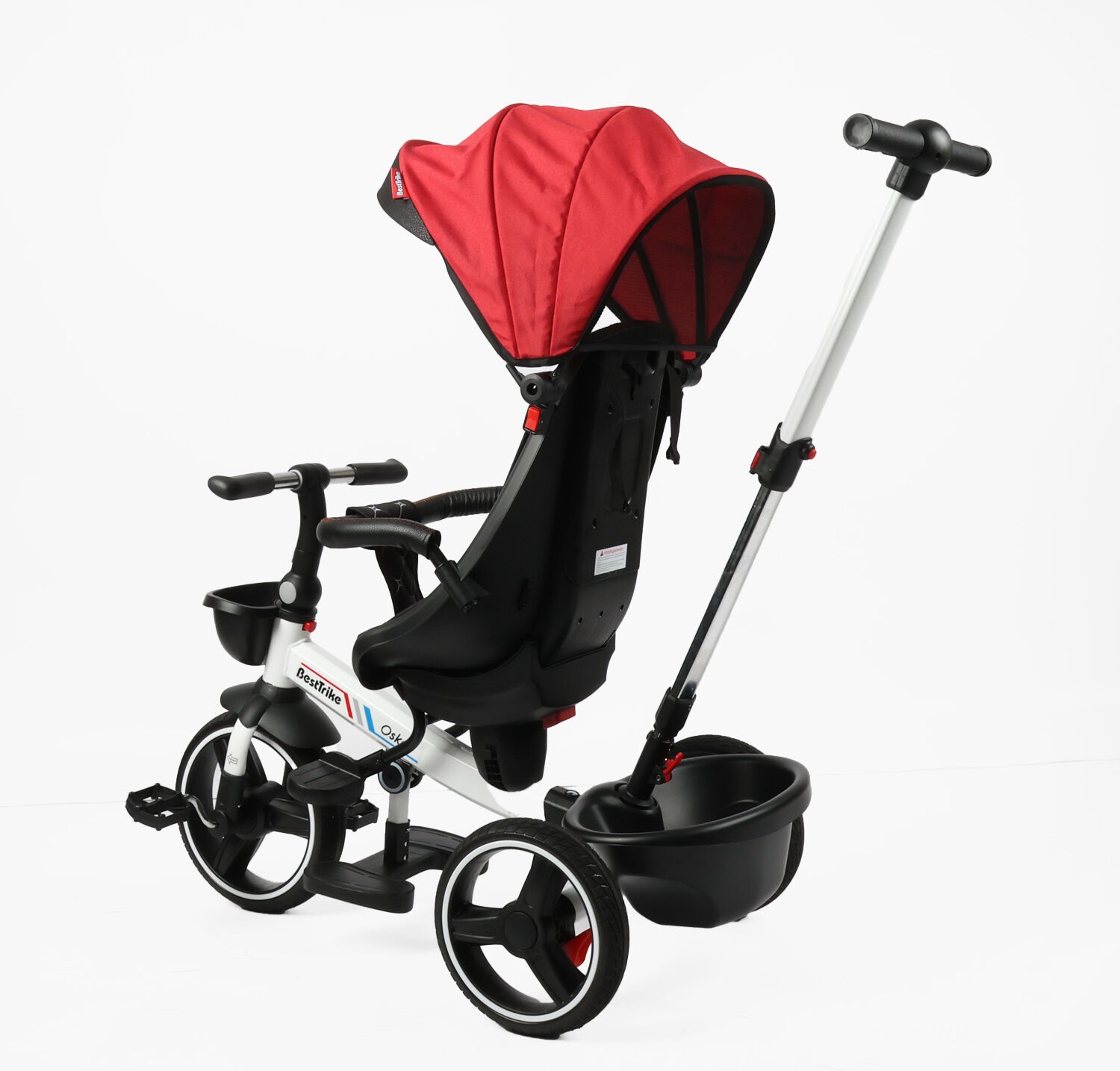 Дитячий велосипед 3-кол з батьківською ручкою, з даш, PU BestTrike «OSCAR» 6390/22-918 червоний, поворотне сидіння, складне кермо, кошик, телескопічна ручка