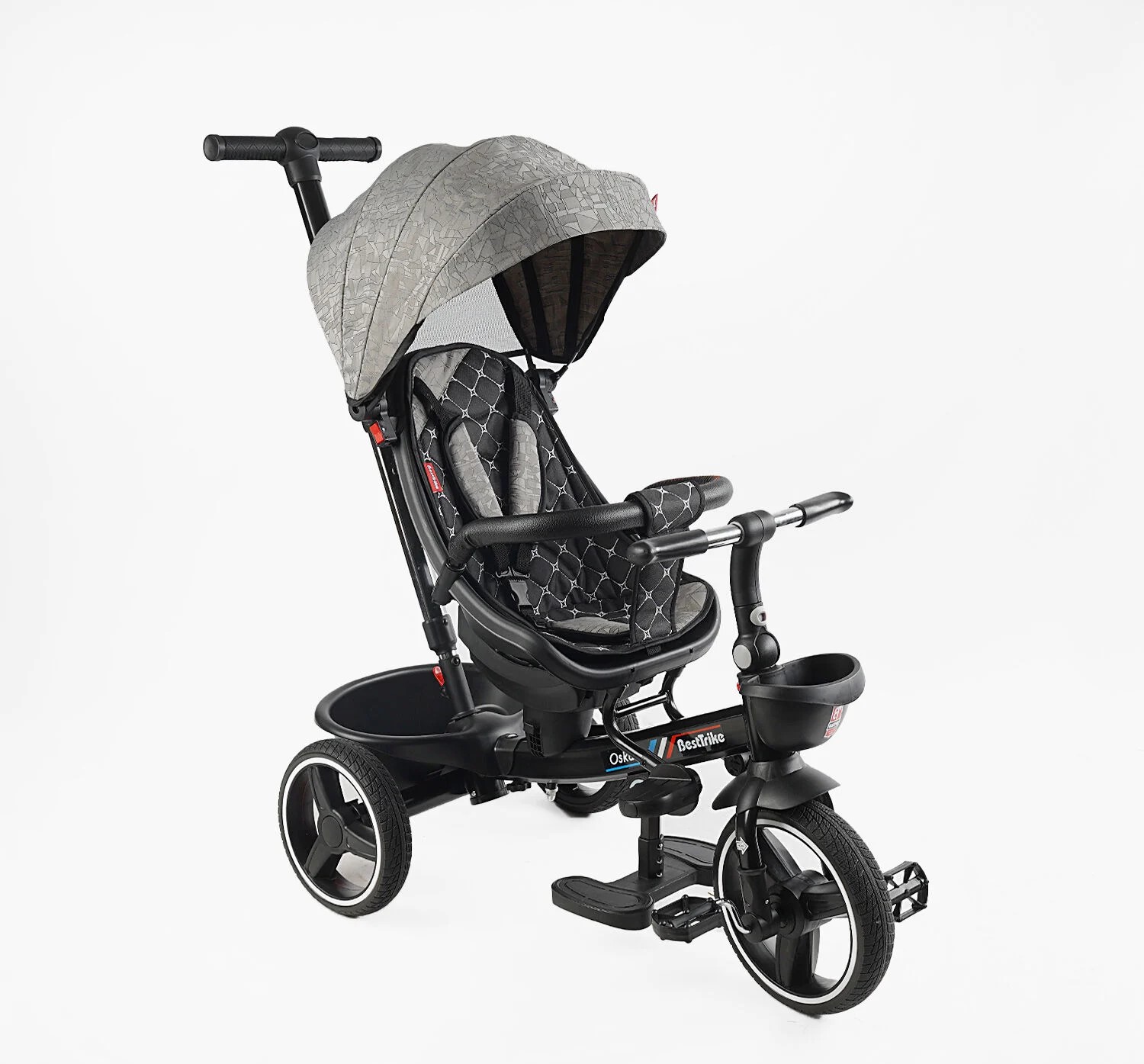 Дитячий велосипед 3-кол з батьківською ручкою, з даш, PU BestTrike «OSCAR» 6390/18-698 чорно-сірий, поворотне сидіння, кермо складне, кошик, телескопічна ручка