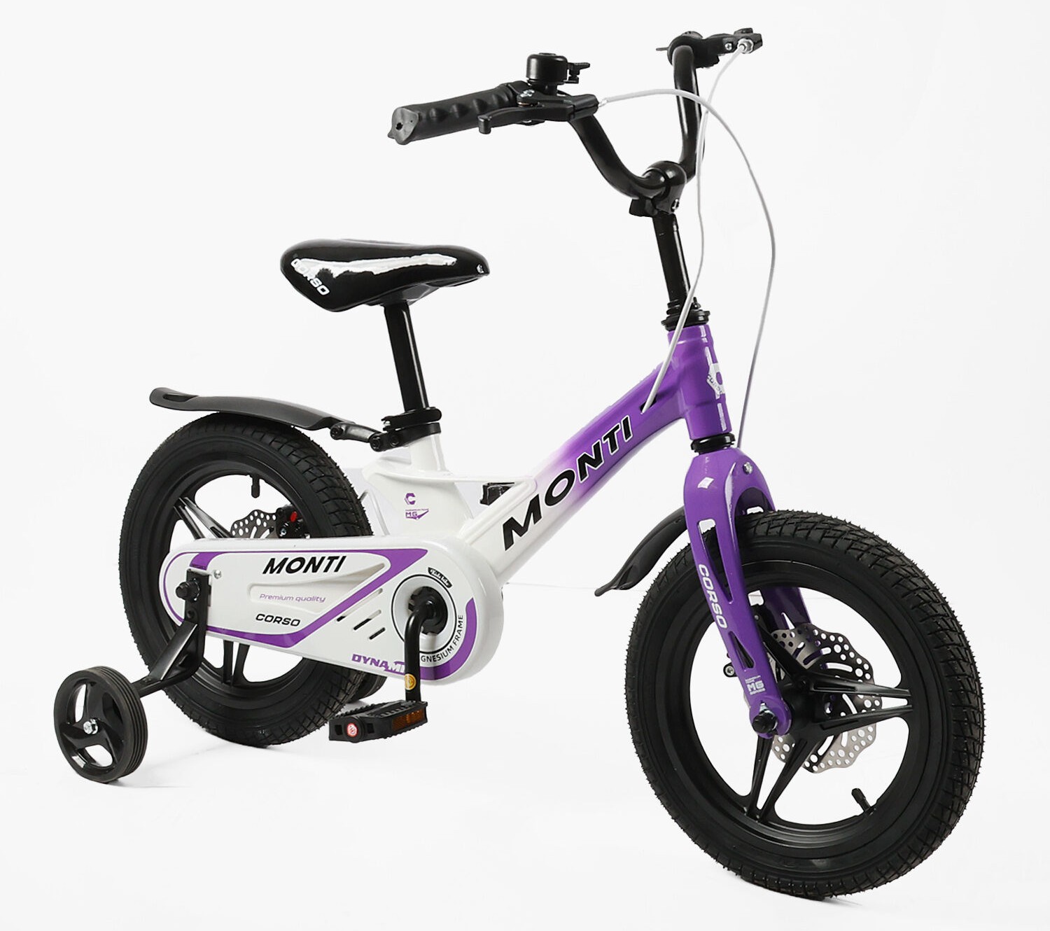 Дитячий велосипед 14 MG Corso «MONTI» MT-14041, магнієва рама, біло-фіолетовий