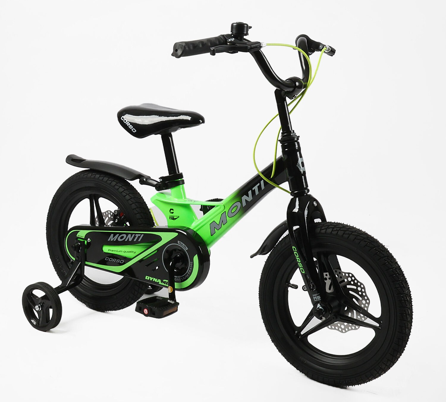 Дитячий велосипед 14 MG Corso «MONTI» MT-14113, магнієва рама, чорно-салатовий