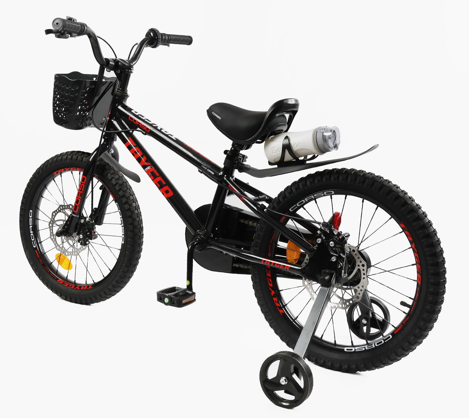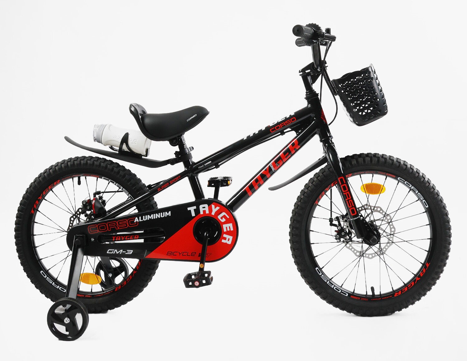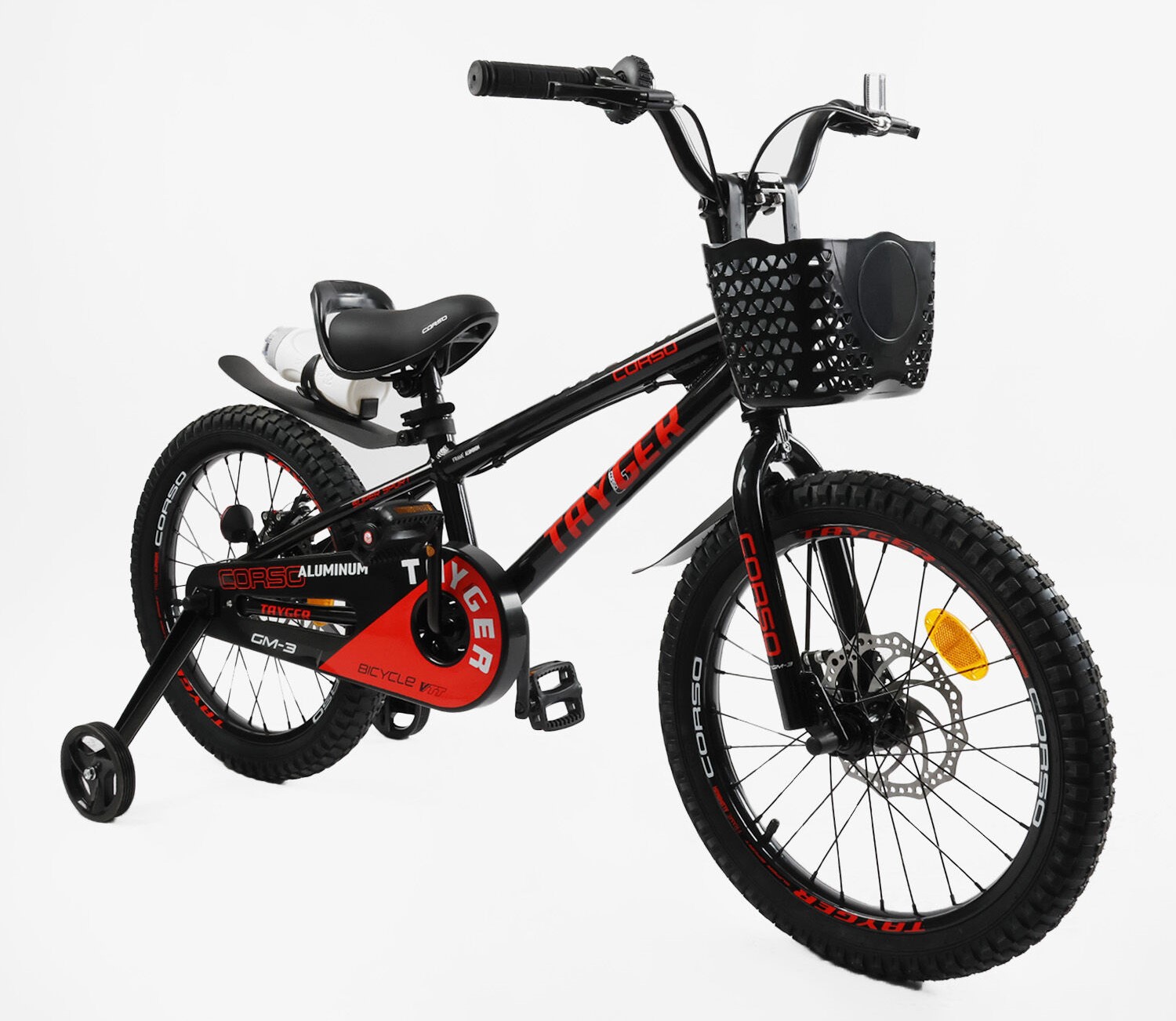 Дитячий велосипед 18 AL Corso «TAYGER» TG-78512 алюмінієва рама, дискові гальма, чорно-червоний