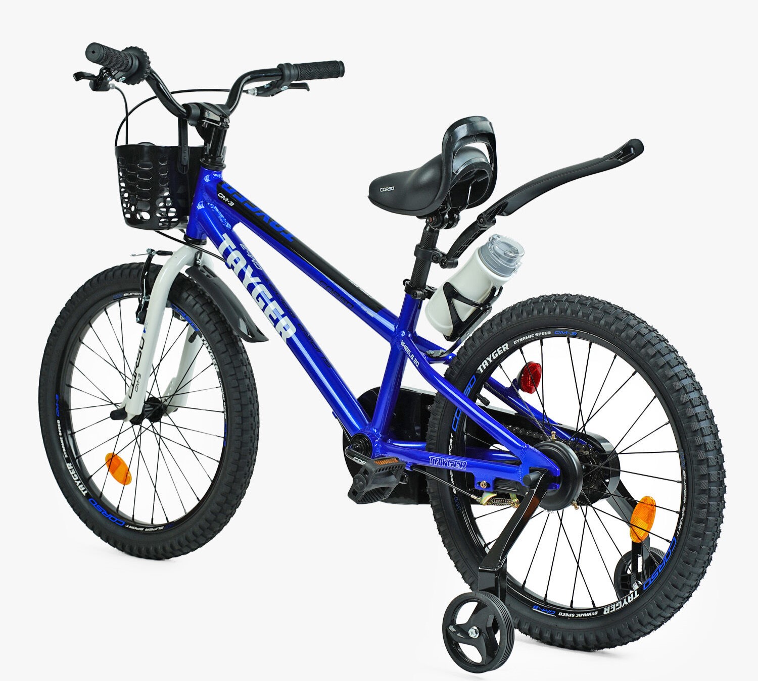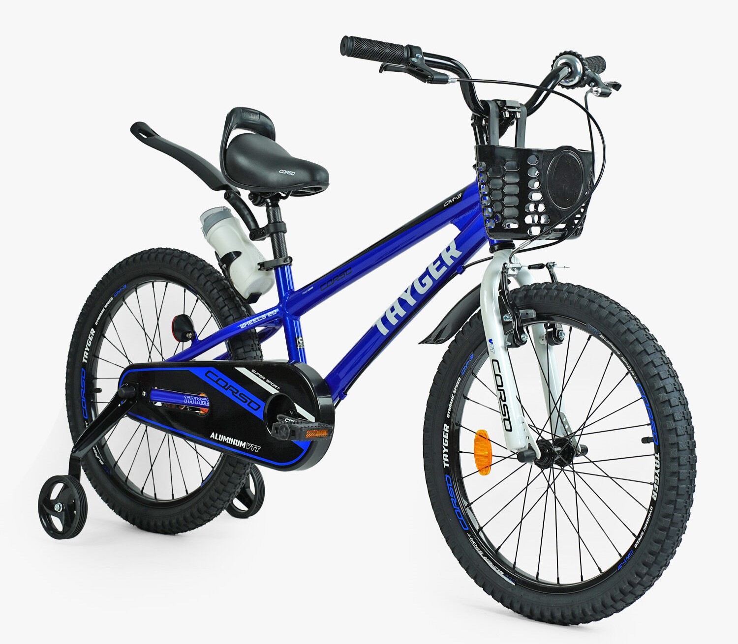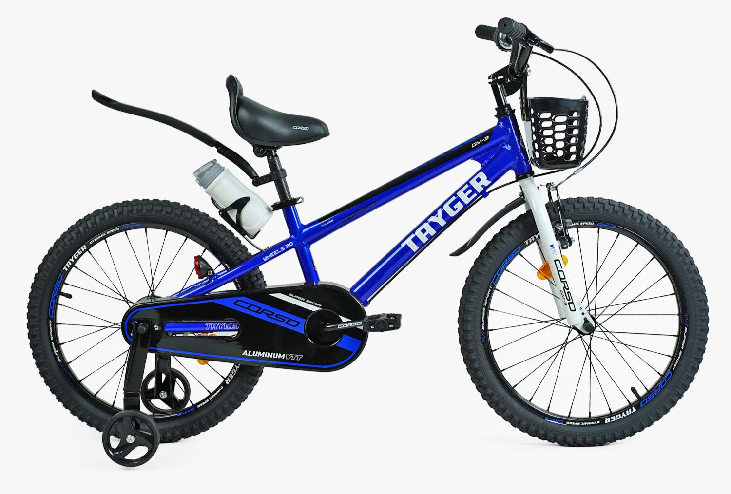 Дитячий велосипед 20 AL Corso «TAYGER» TG-62355 алюмінієва рама синій, ручне гальмо, дод. колеса, дзвоник, бутилочка
