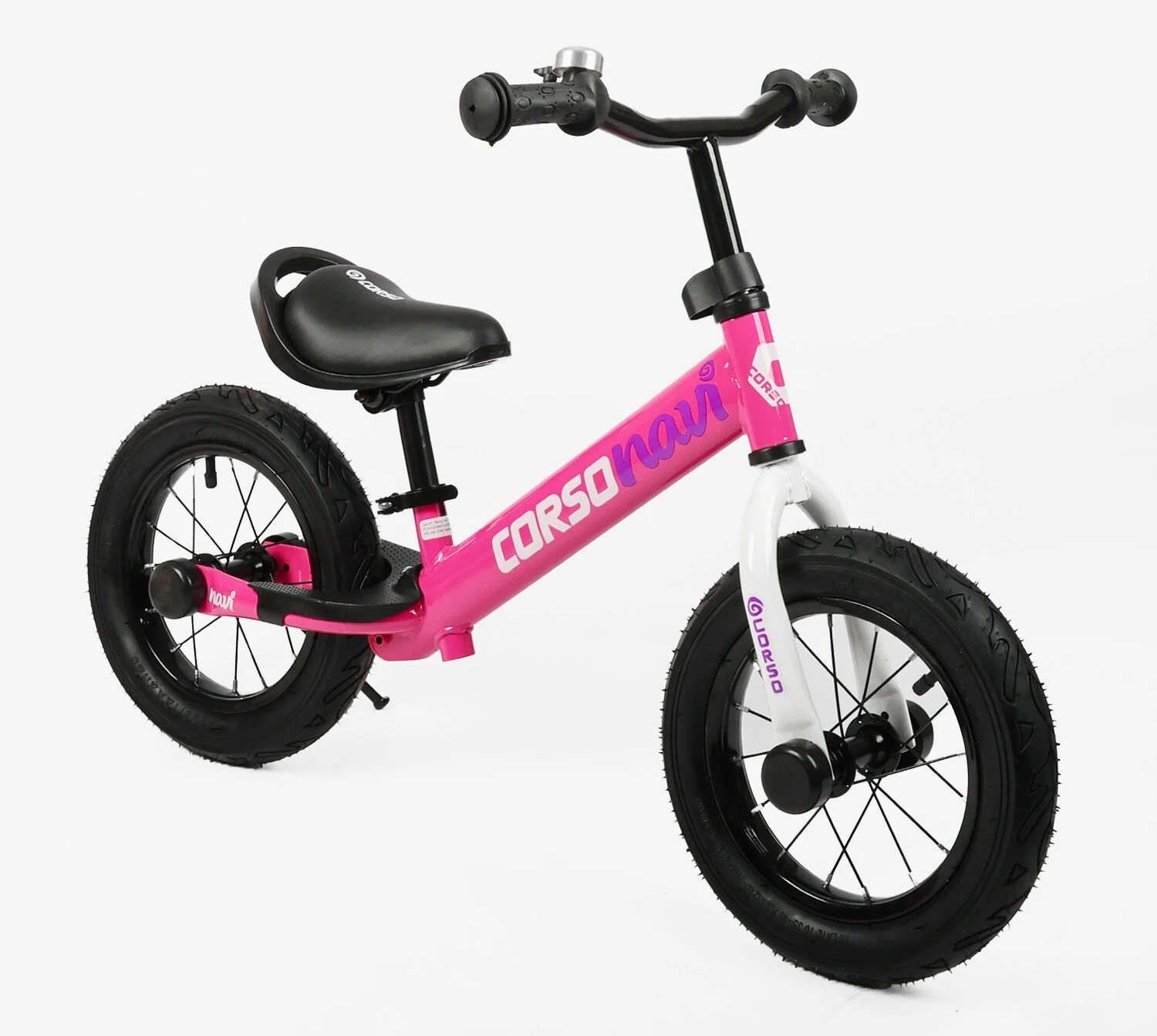 Велобіг 12 Corso надувні колеса, сталева рама «NAVI» NV-73166 помаранчевий, підніжка, підставка для ніг, дзвіночок
