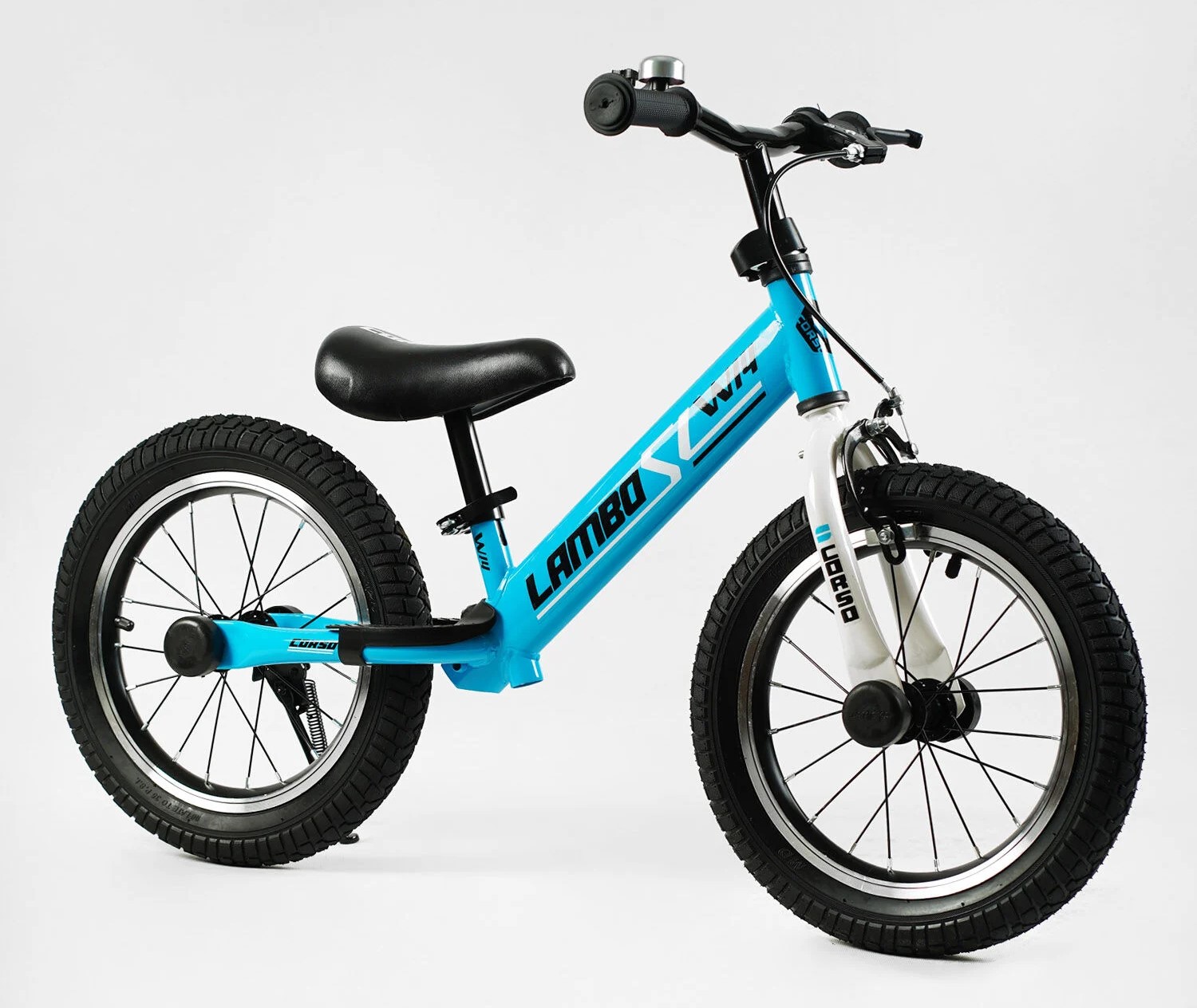 Велобіг 14 Corso надувні колеса, сталева рама «LAMBO» LB-14802 блакитний, ручне гальмо, алюмінієві обода, підставка для ніг, підніжка, дзвоник
