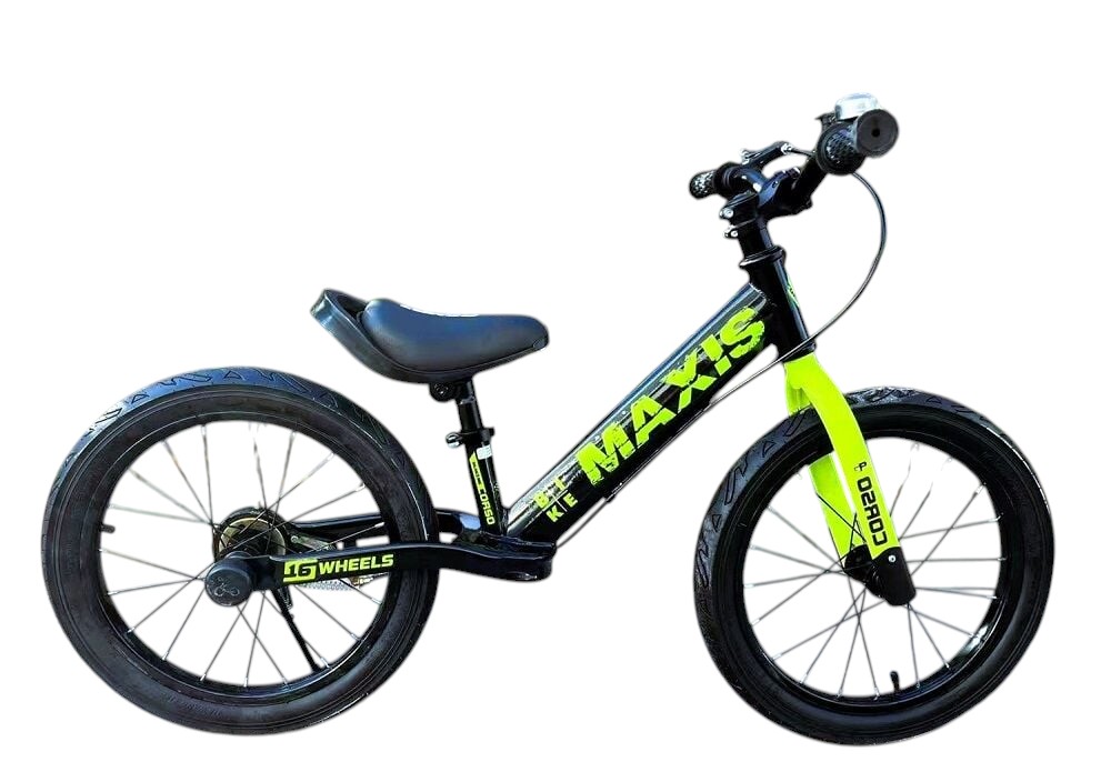 Велобіг 16 Corso надувні колеса, сталева рама «MAXIS» MX-71065 чорно-салатовий