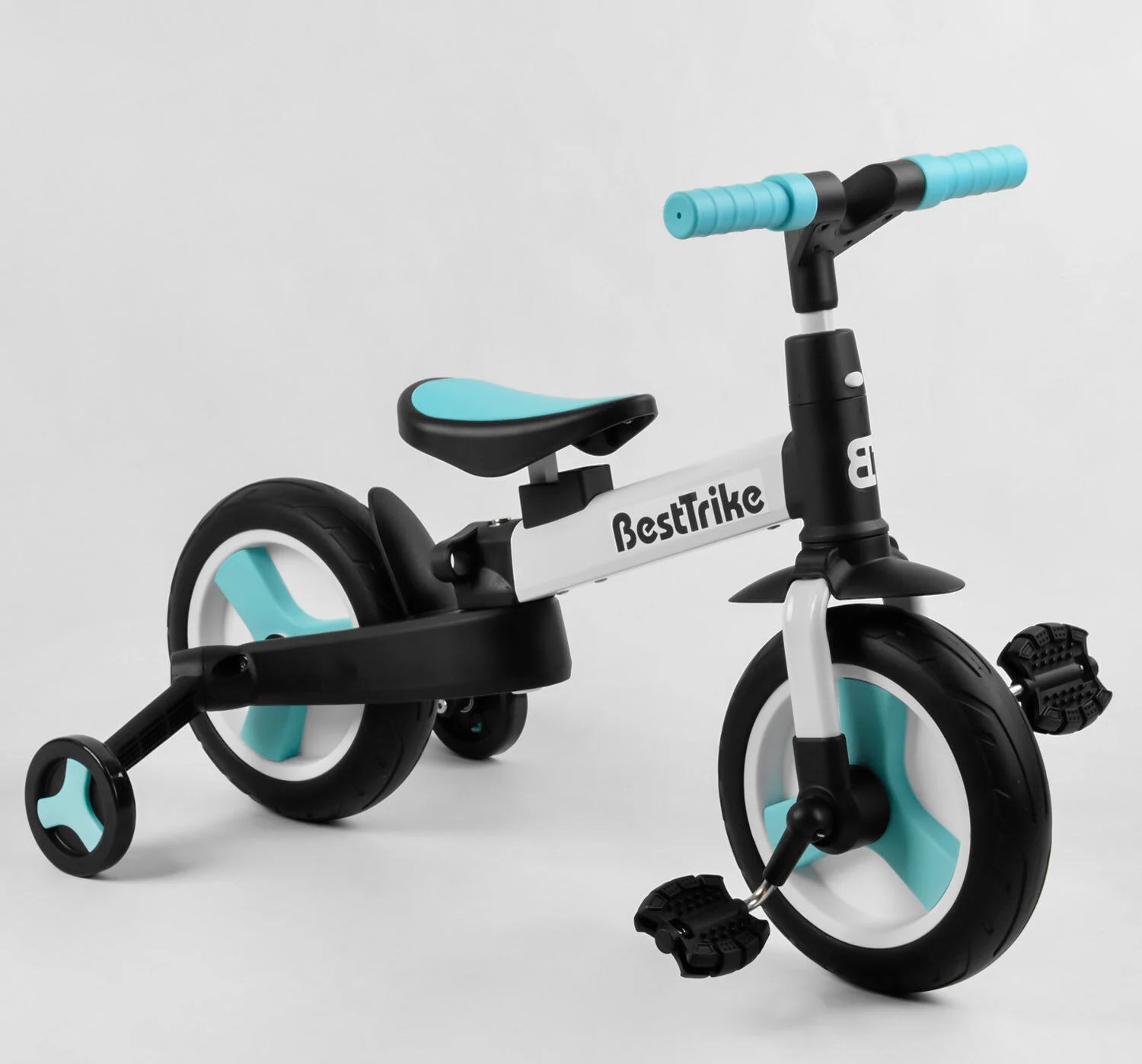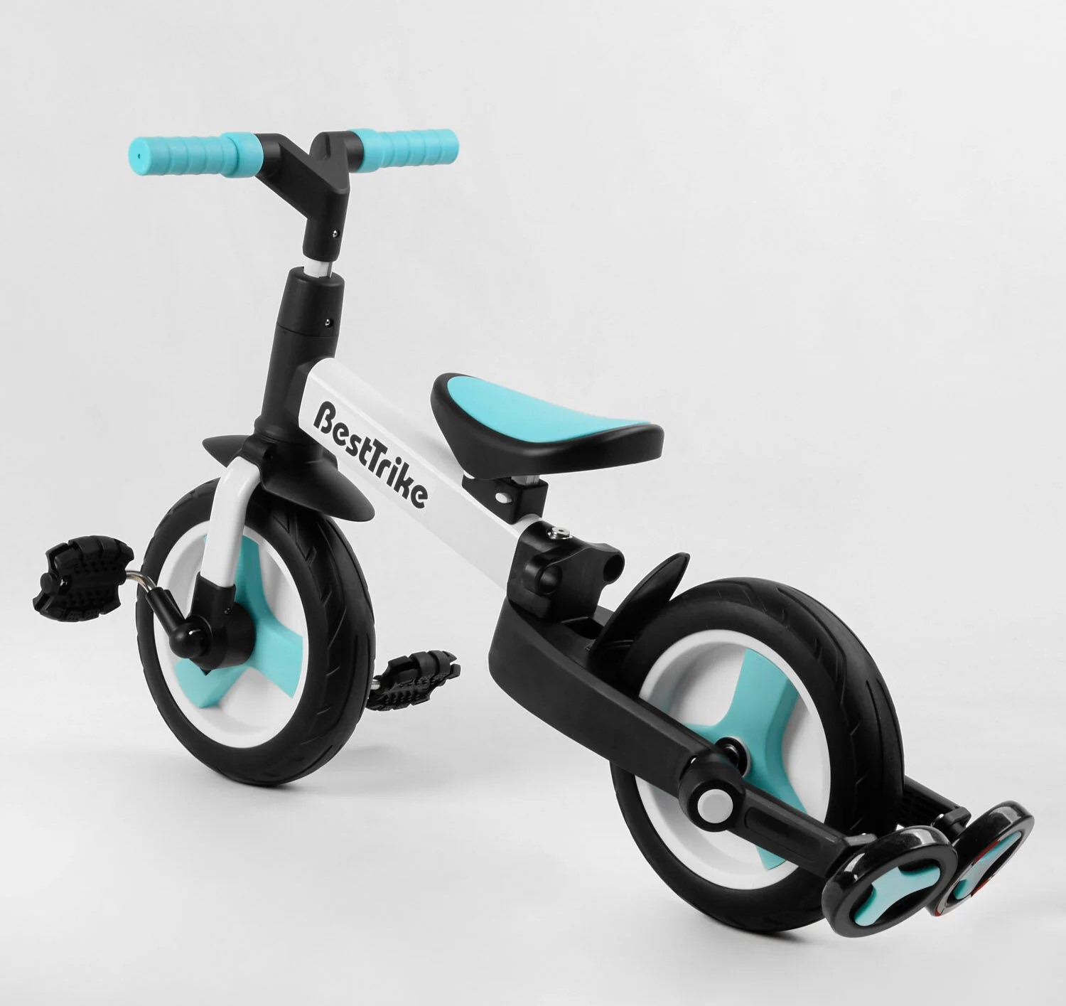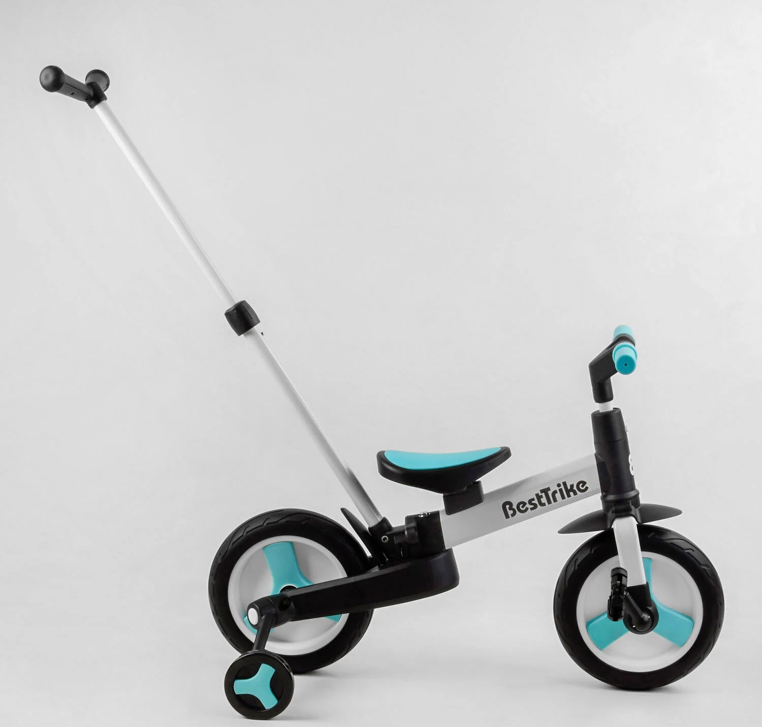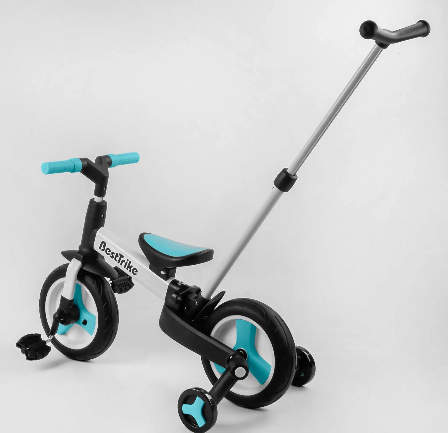 Велобіг-трансформер, 2-кол з батьківською ручкою, PU 10 BestTrike алюміній 56659 біло-блакитний, складний, батьківська ручка, знімні педалі
