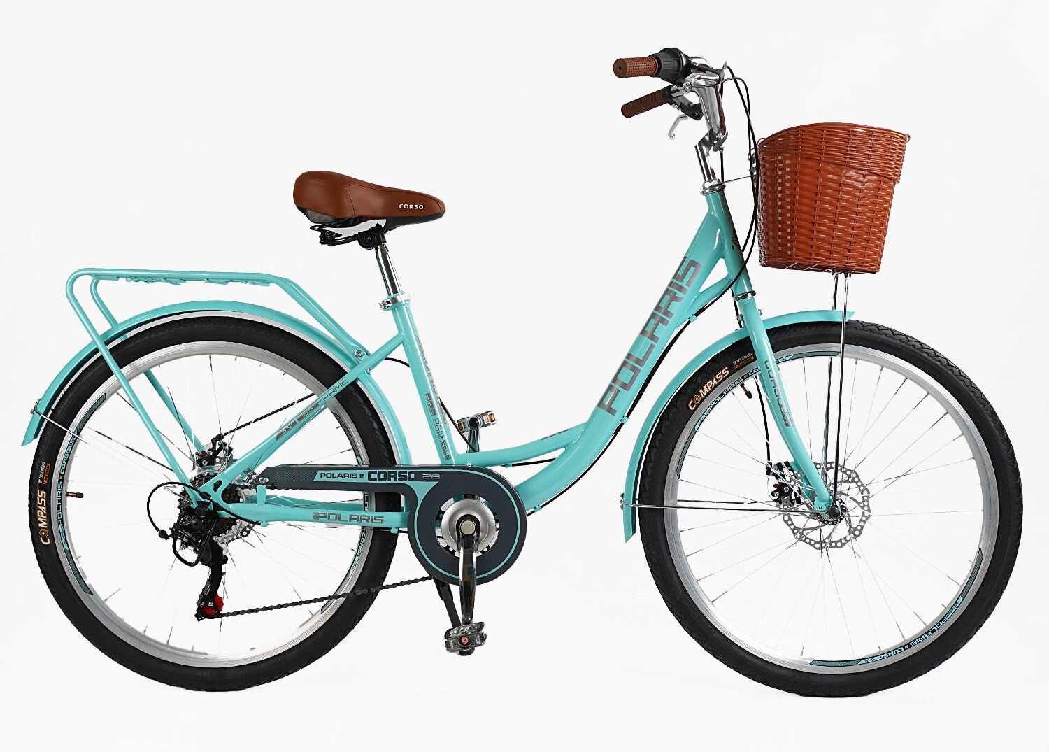 Міський велосипед 26 ST Corso «POLARIS» PS-63909 сталь 16,5", (к-т SHIMANO) блакитний (+к/к/б)