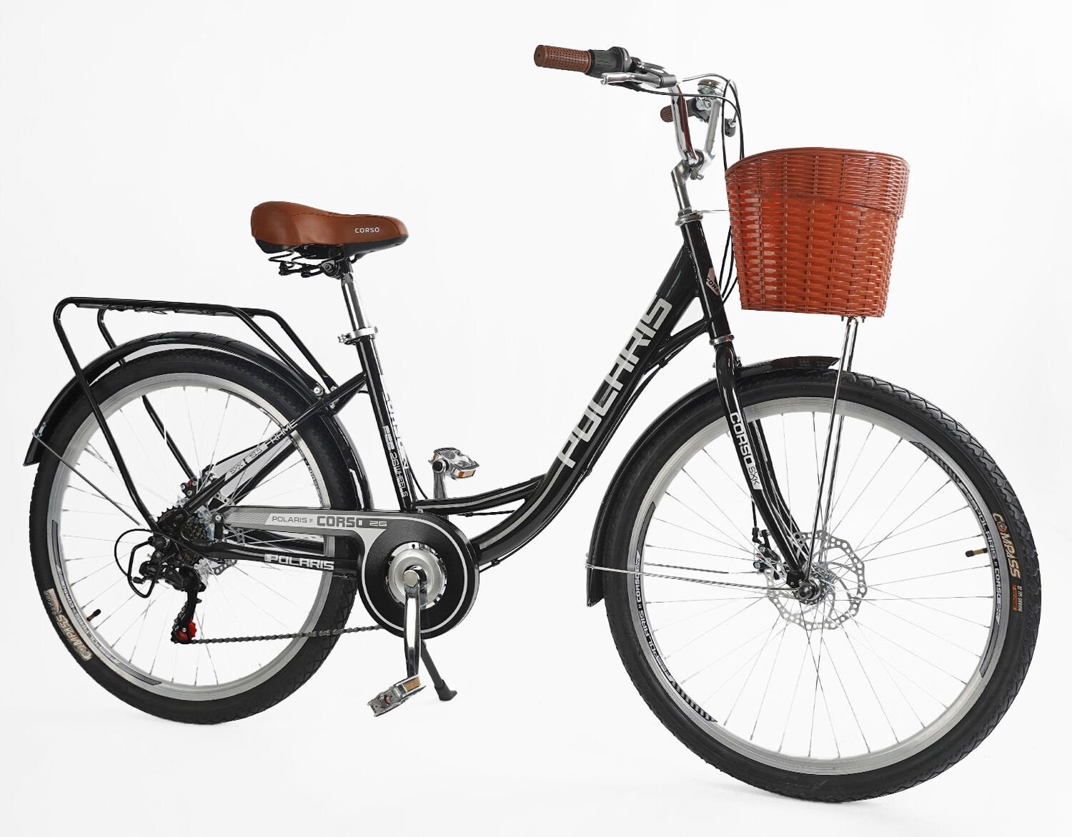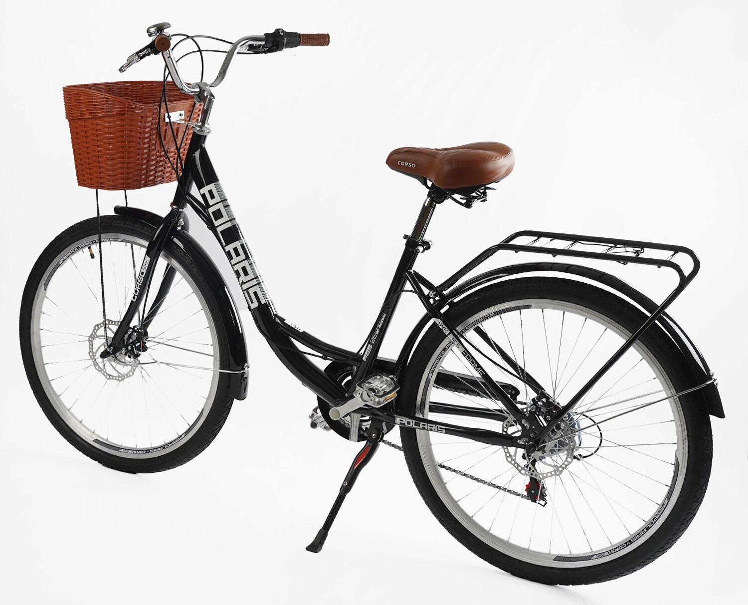 Міський велосипед 26 ST Corso «POLARIS» PS-80110 сталь 16,5", (к-т SHIMANO) чорний (+к/к/б)