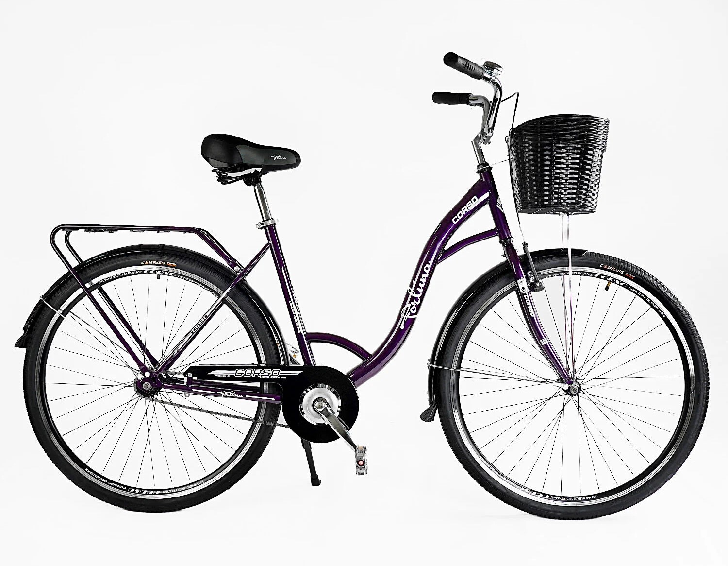 Міський велосипед 28 ST Corso «FORTUNA» FR-28077 сталь 20", темно фіолетовий2) (+к/к/б) кошик чорний