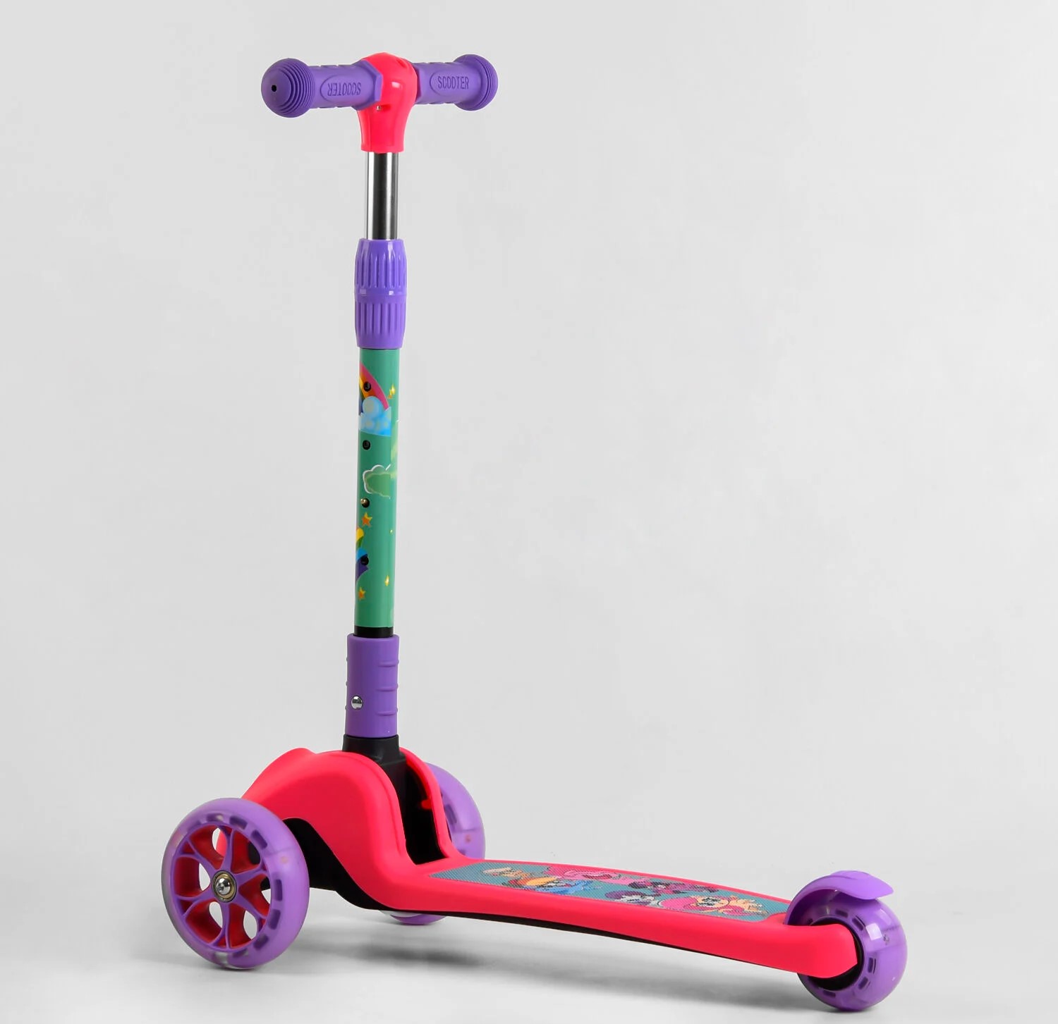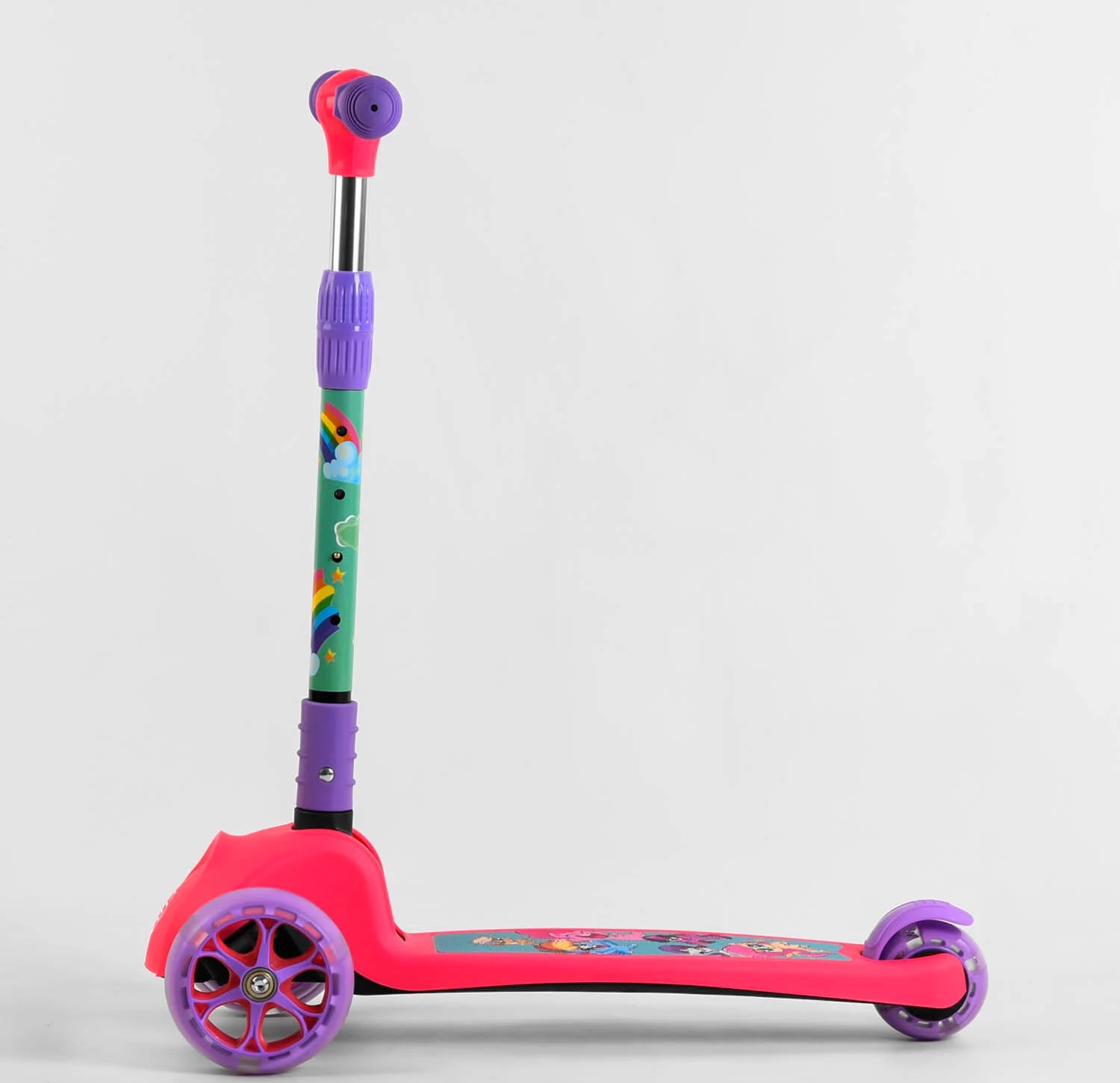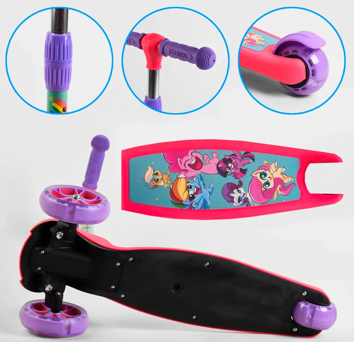 Самокат дитячий 3-х колісний, Best Scooter «MY LITTLE PONY» 68055 рожевий, колеса PU Ø120mm/80mm зі світлом, складне кермо