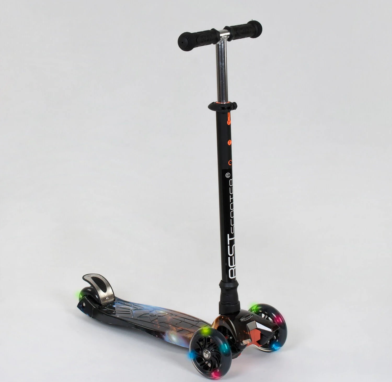 Самокат дитячий 3-х колісний, Best Scooter «MAXI» 2464 / 779-1311 чорний (космос), колеса PU Ø120mm/80mm зі світлом, пластмасовий, трубка керма алюмінієва