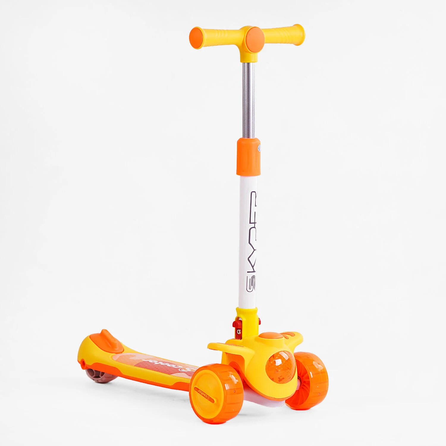 Самокат дитячий 3-х колісний, Skyper BS-911 помаранчево-жовтий, колеса PU Ø125mm зі світлом, музика та підсвічування платформи, кермо складне