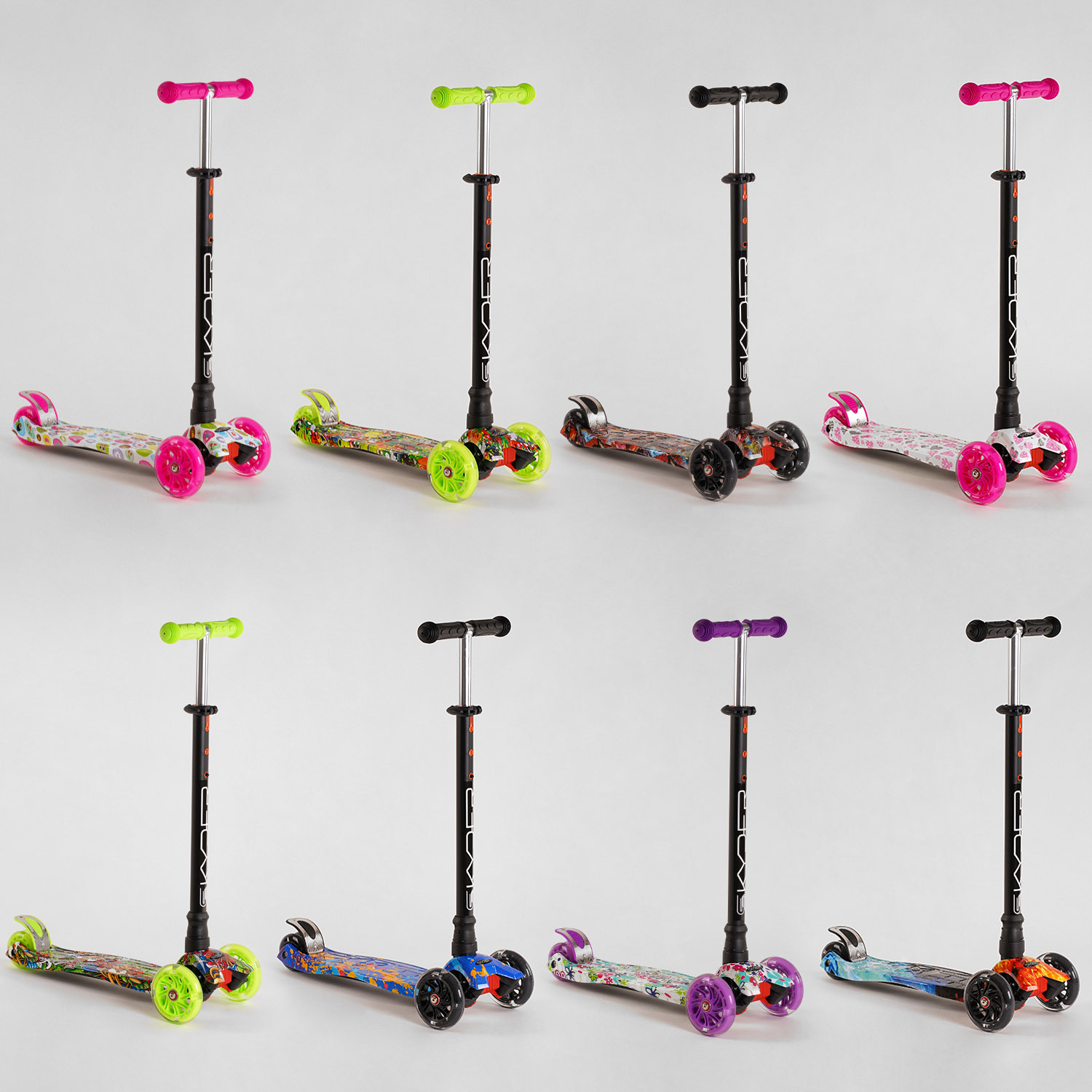 Самокат дитячий 3-х колісний, Skyper «MAXI» 113-33565 видається тільки ЯЩИКОМ МІКС кольорів (8), колеса PU Ø120mm/80mm зі світлом