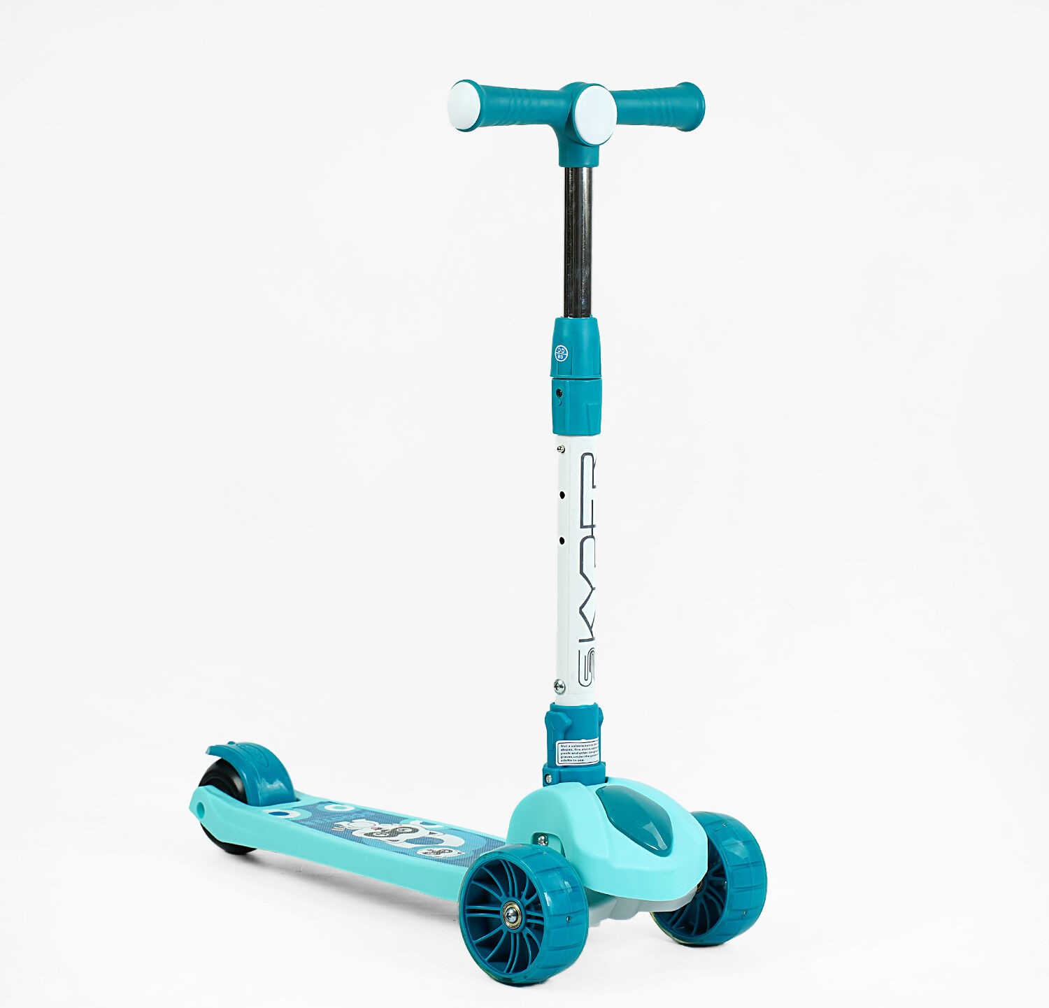 Самокат дитячий 3-х колісний, Skyper SL-2605 блакитно-бірюзовий, колеса PU Ø125mm зі світлом, музика та підсвічування платформи, складне кермо