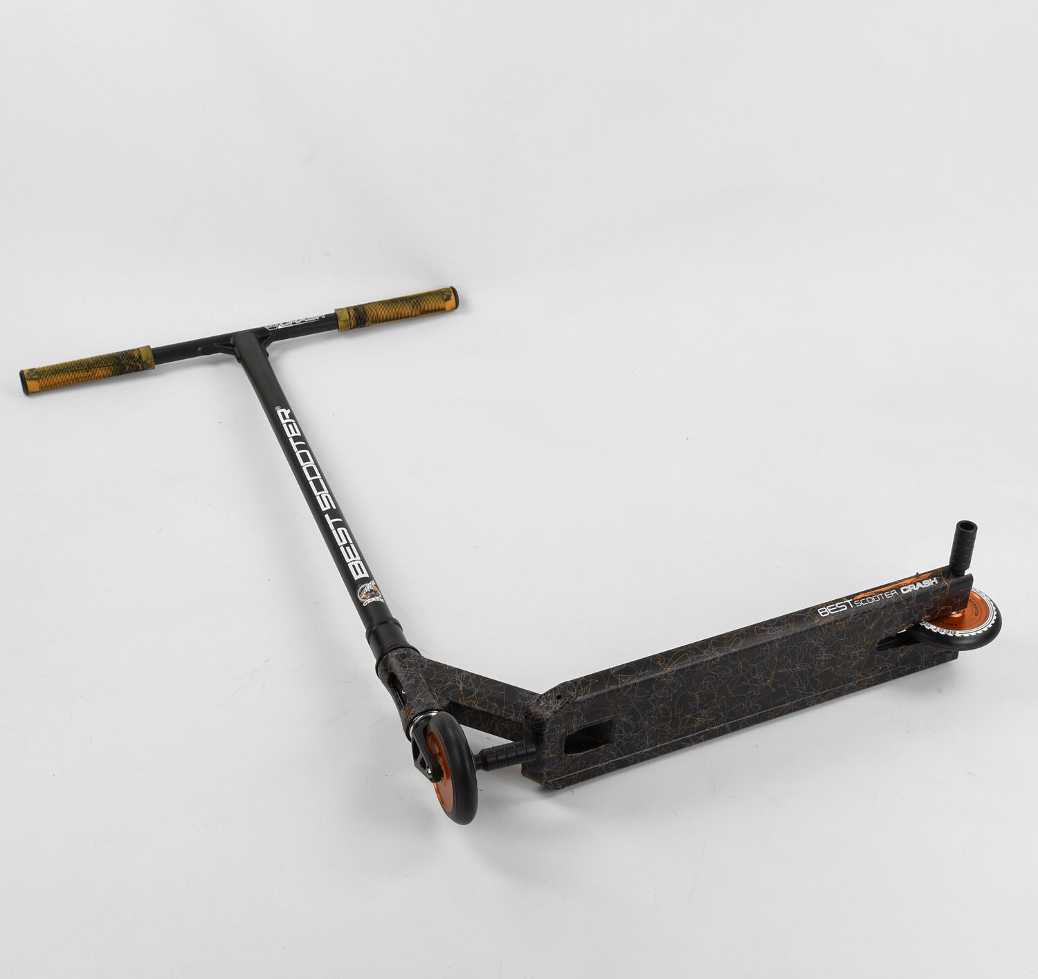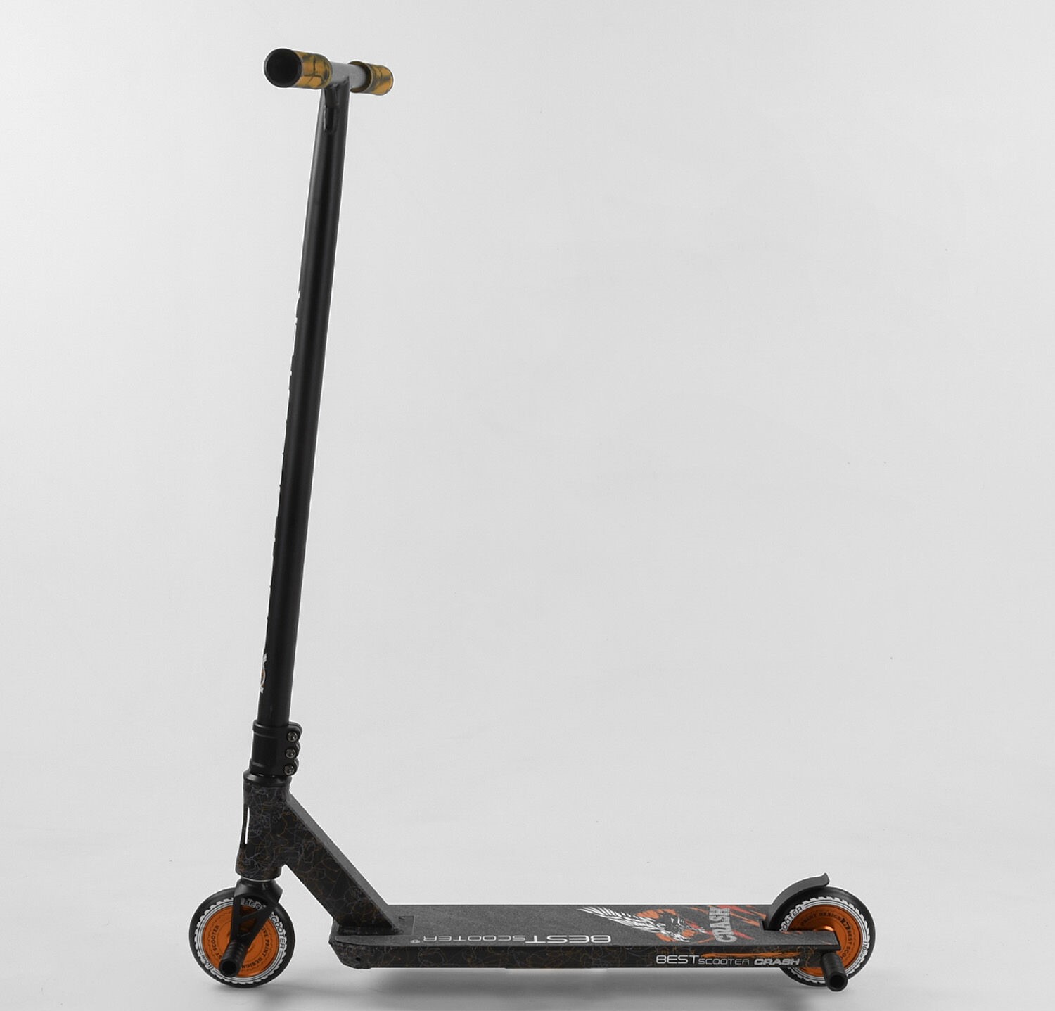 Самокат трюковий Best Scooter «CRASH» 65640 чорно-помаранчевий, HIC-система, пеги, AL диск та дека, колеса PU Ø110mm, ширина керма - 57 см