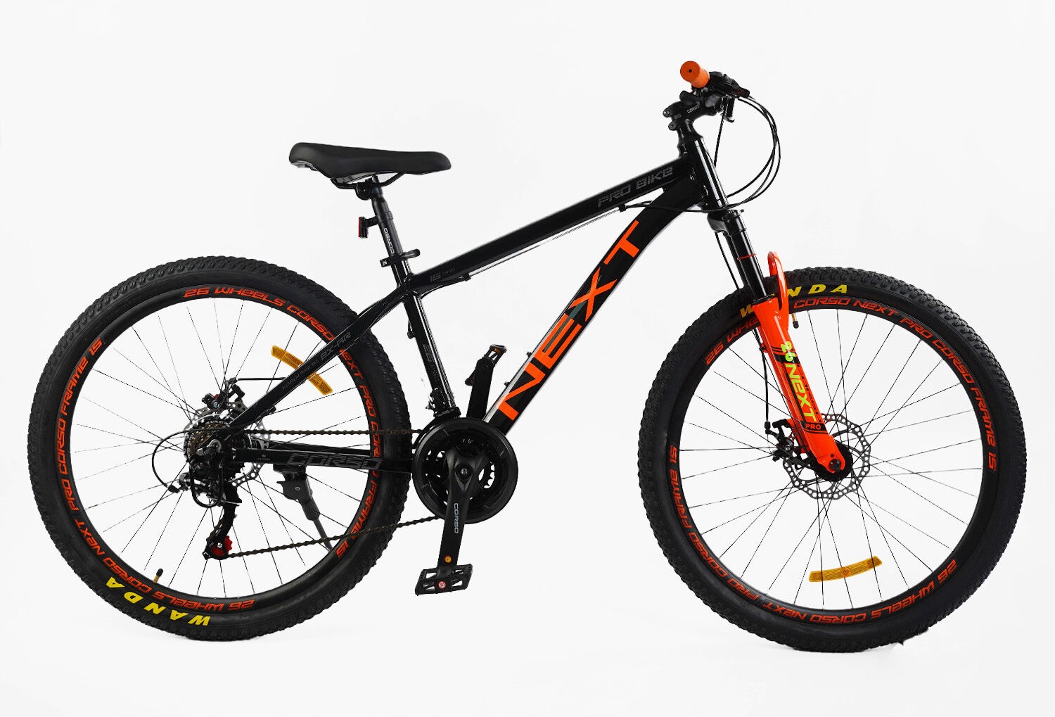 Велосипед 26 AL Corso «NEXT» NX-26505 алюміній 15", (к-т SHIMANO) чорно-помаранчевий