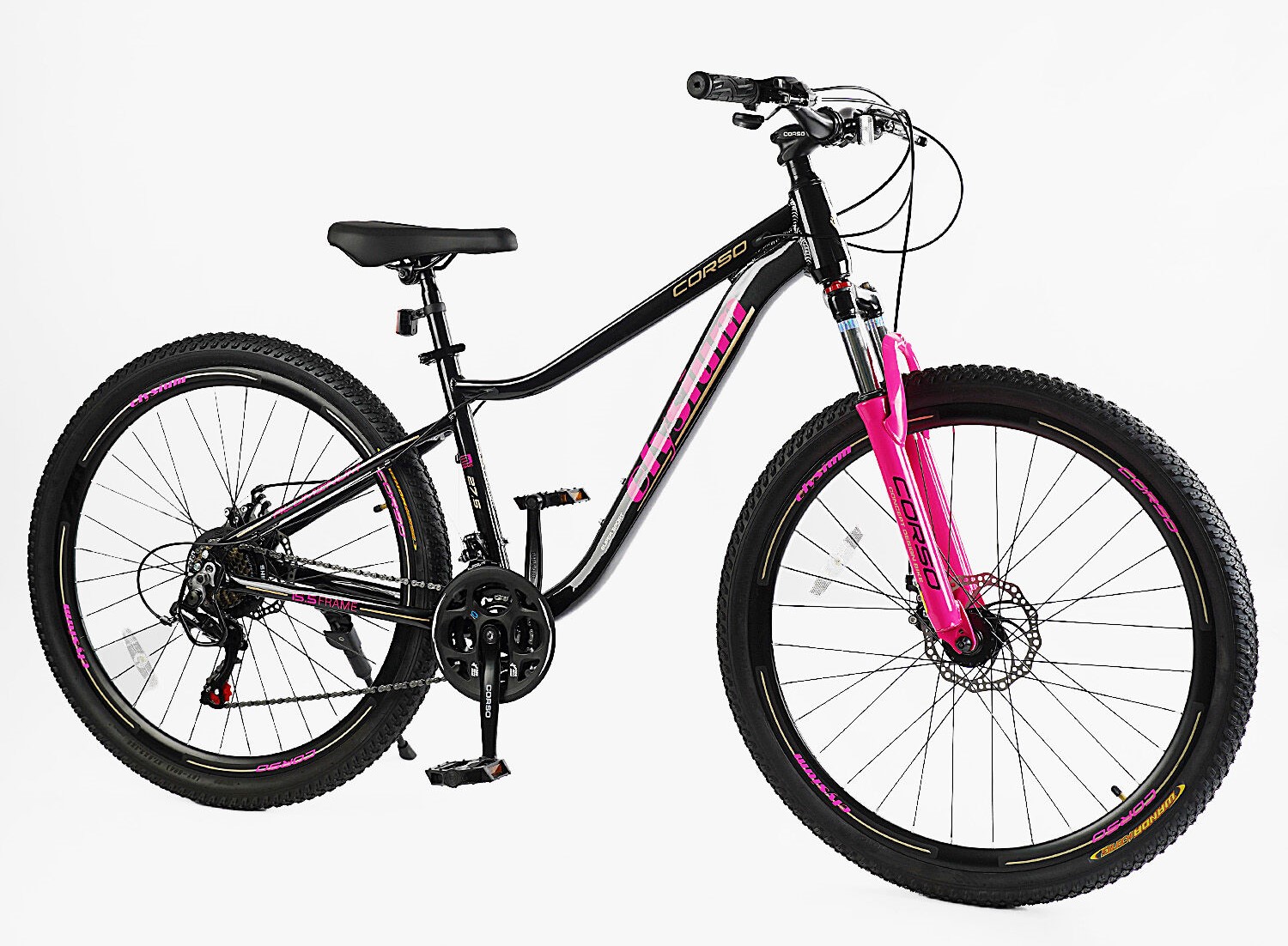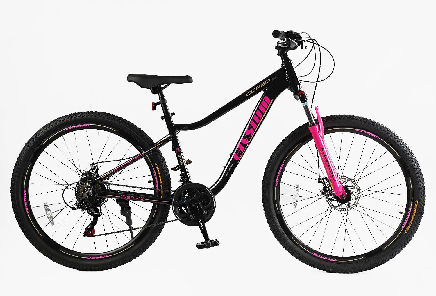 Велосипед 27.5 AL Corso «ELYSIUM» LS-27708 алюміній 15.5", (к-т SHIMANO) чорно-рожевий