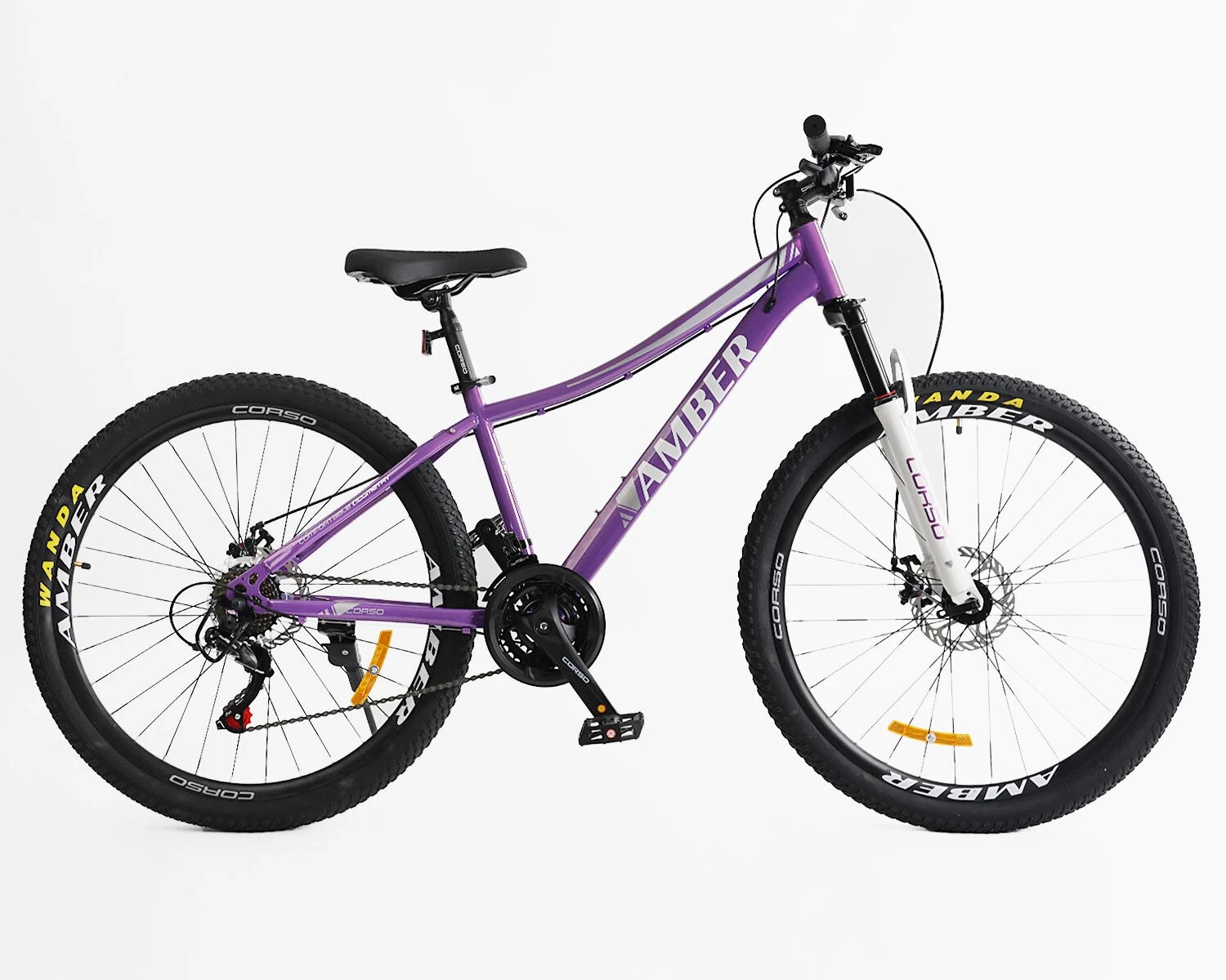 Велосипед 27.5 ST Corso «AMBER» MB-23960 сталь 15", (к-т SHIMANO) фіолетово-білий