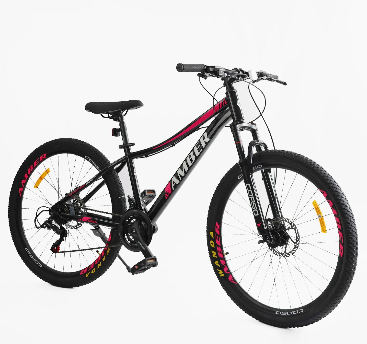 Велосипед 27.5 ST Corso «AMBER» MB-62589 сталь 15", (к-т SHIMANO) чорно-рожевий