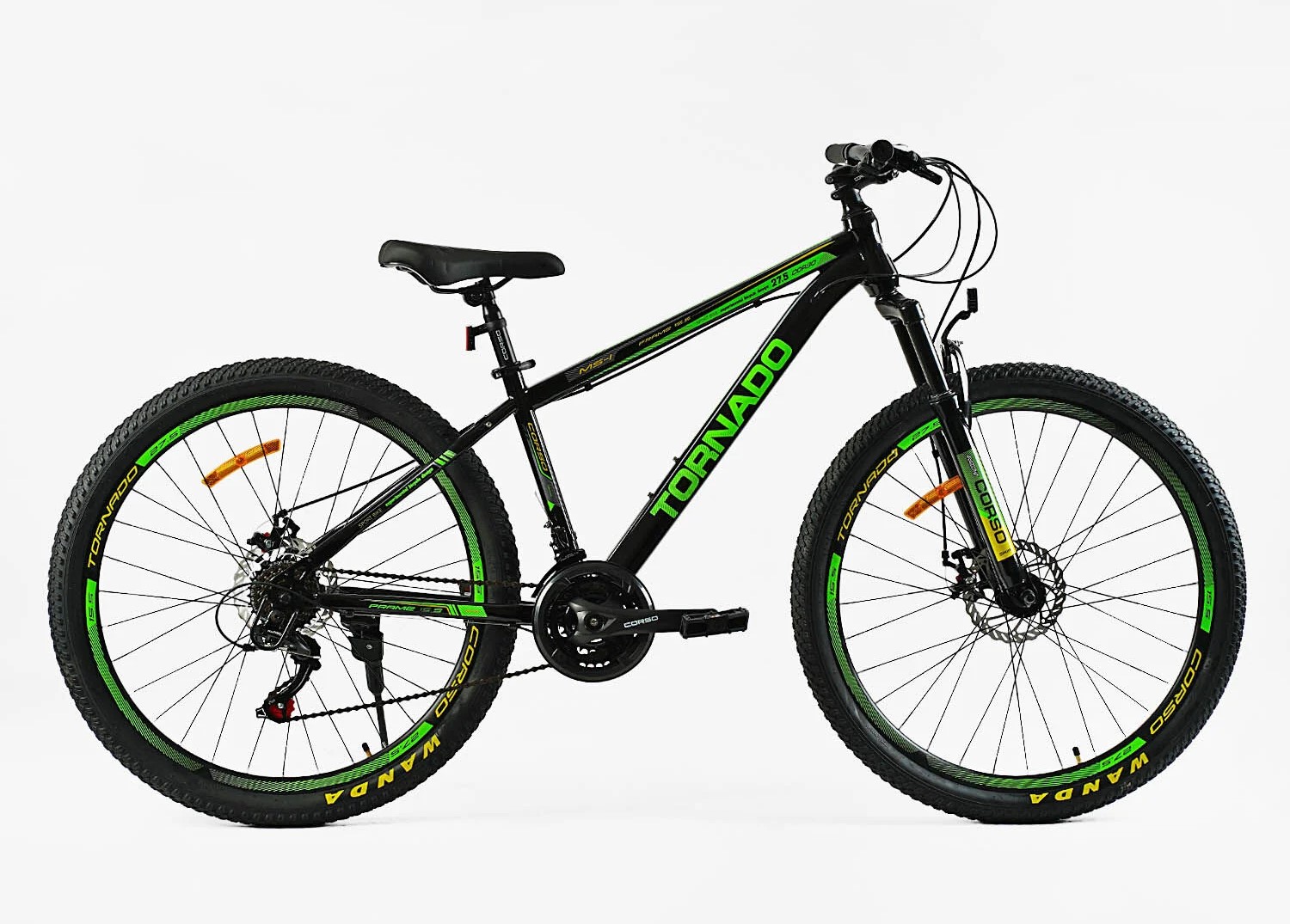 Велосипед 27.5 ST Corso «TORNADO» TR-27257 сталь 15,5", (к-т SHIMANO) чорно-салатовий