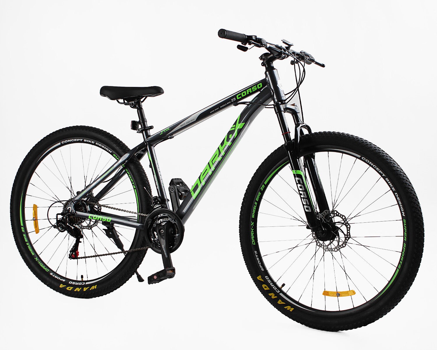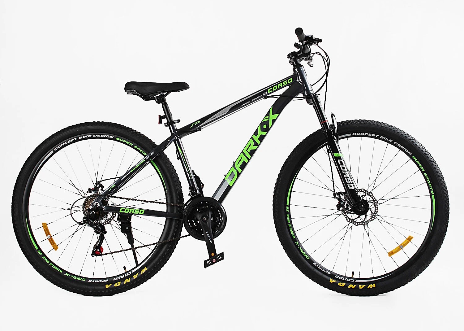 Велосипед 29 AL Corso «DARK-X» DX-29904 алюміній 17", (к-т SHIMANO) графітово-салатовий