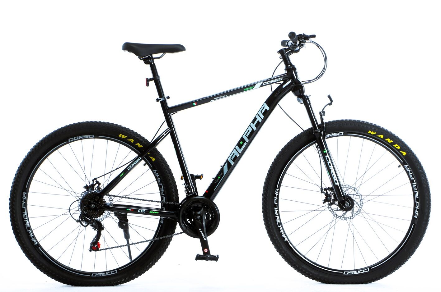 Велосипед 29 ST Corso «ALPHA» LF-29221 сталь 21", (к-т SHIMANO) чорно-зелений
