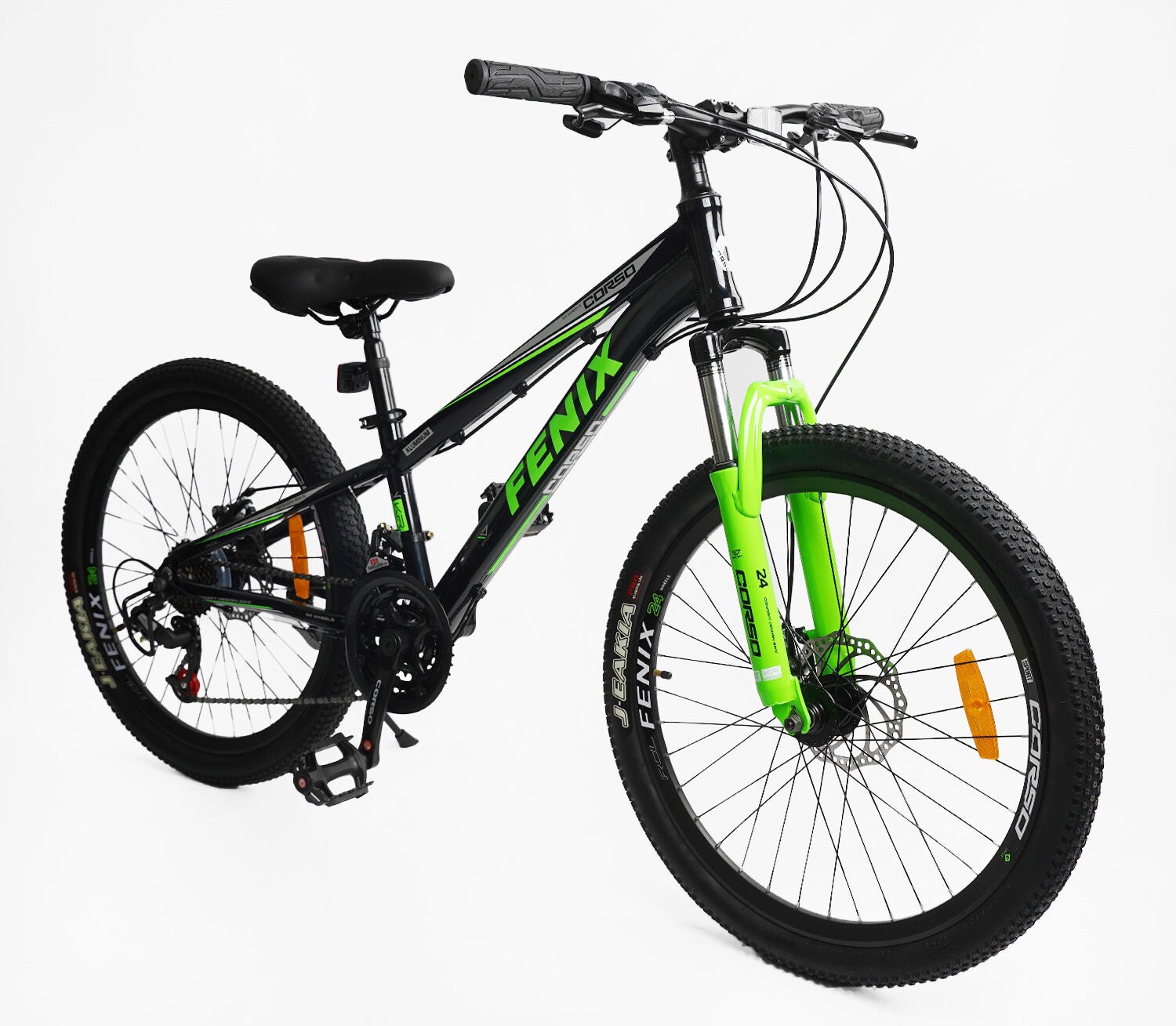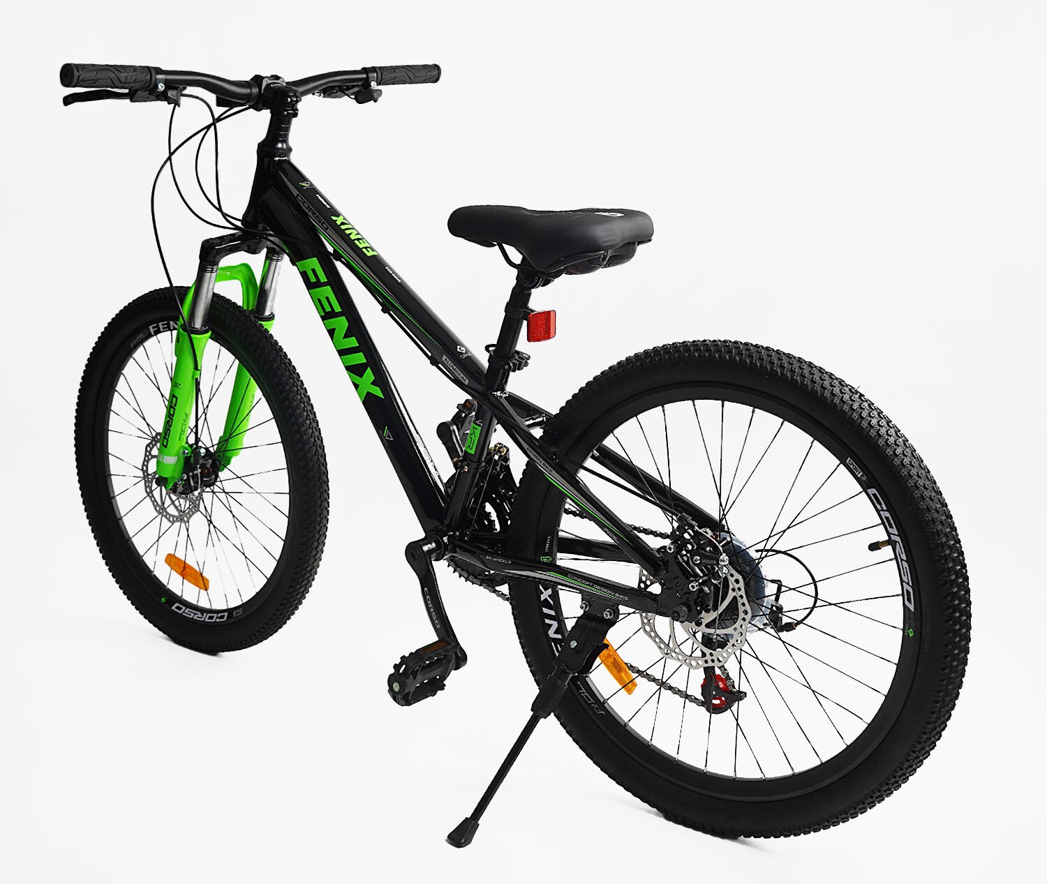 Велосипед 24 AL Corso «FENIX» FX-24882 алюміній 11", (к-т Saiguan) чорно-салатовий