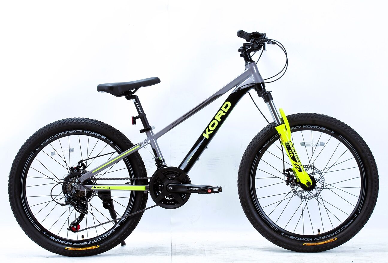 Велосипед 24 AL Corso «KORD» KD-24822 алюміній 11", (к-т SHIMANO) чорно-сіро-жовтий