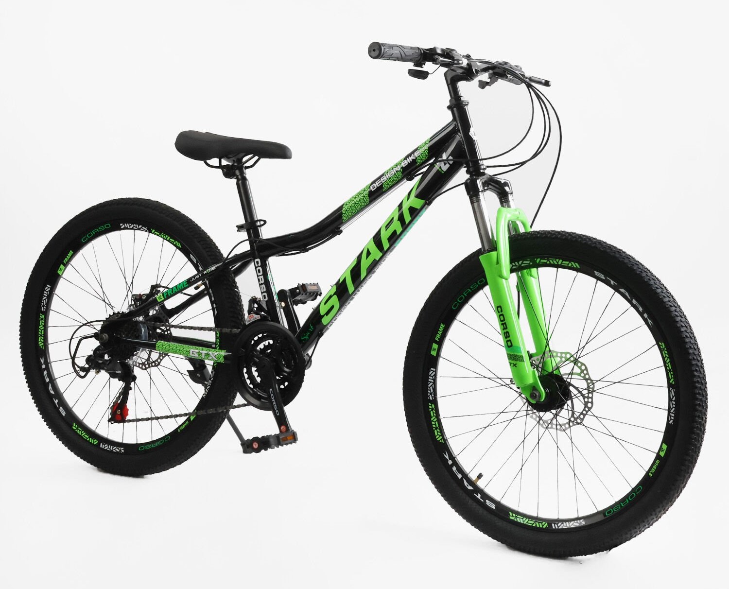 Велосипед 24 ST Corso «STARK» SK-24062 сталь 12", (к-т Saiguan) чорно-салатовий