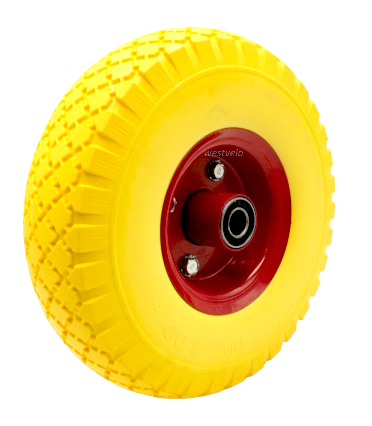 Колесо тачки жовте "4" 3.00-4 під вісь Ø16, пінополіуретанове