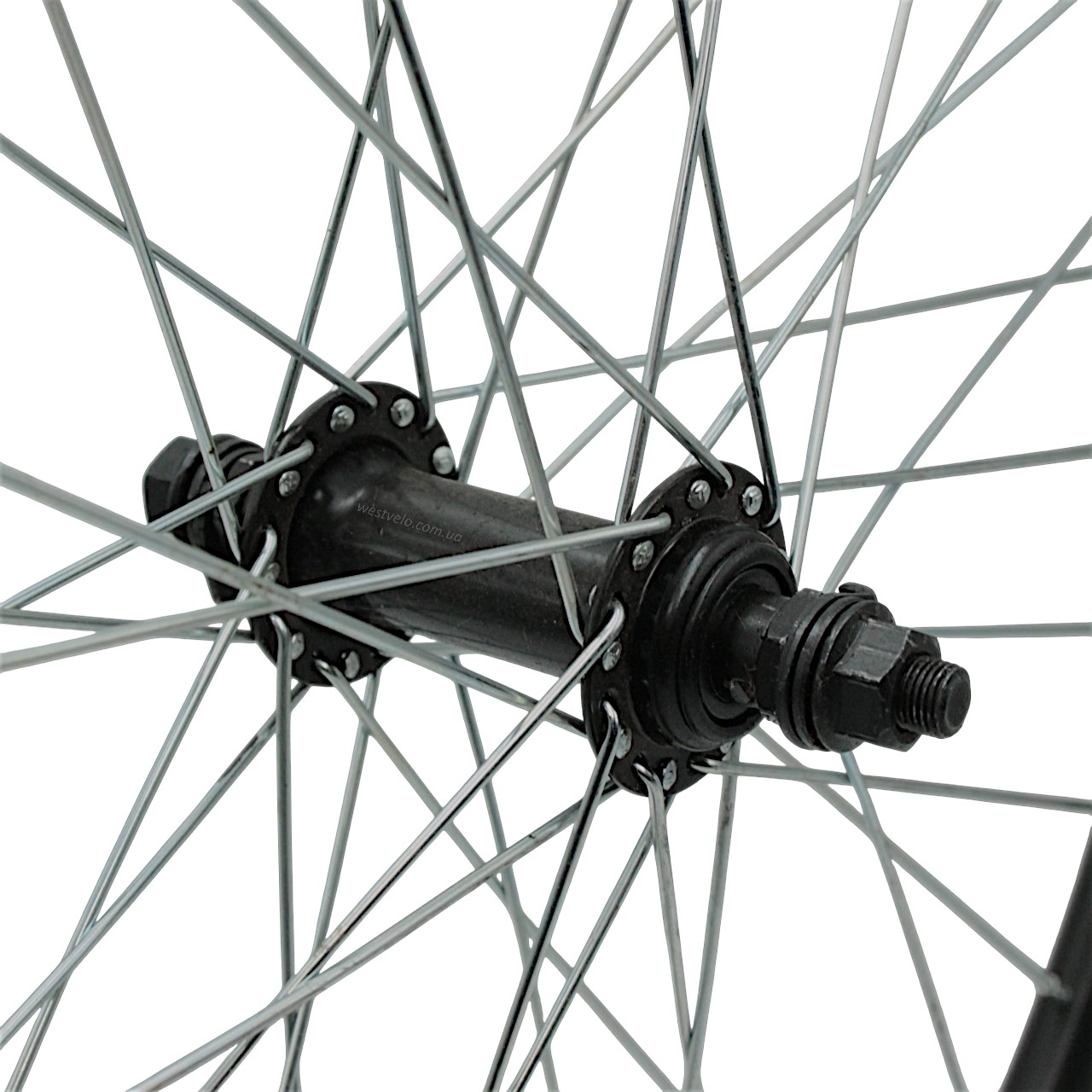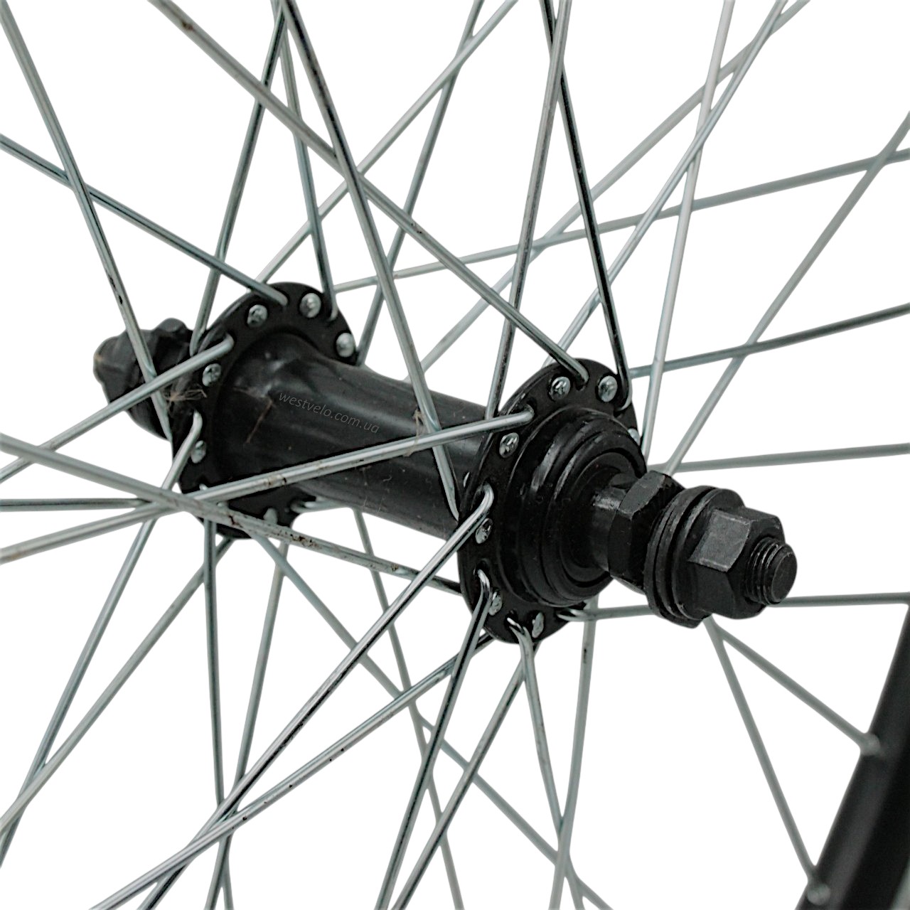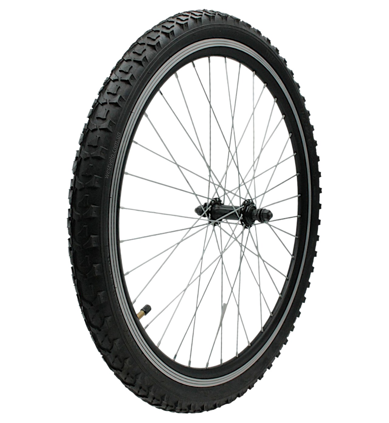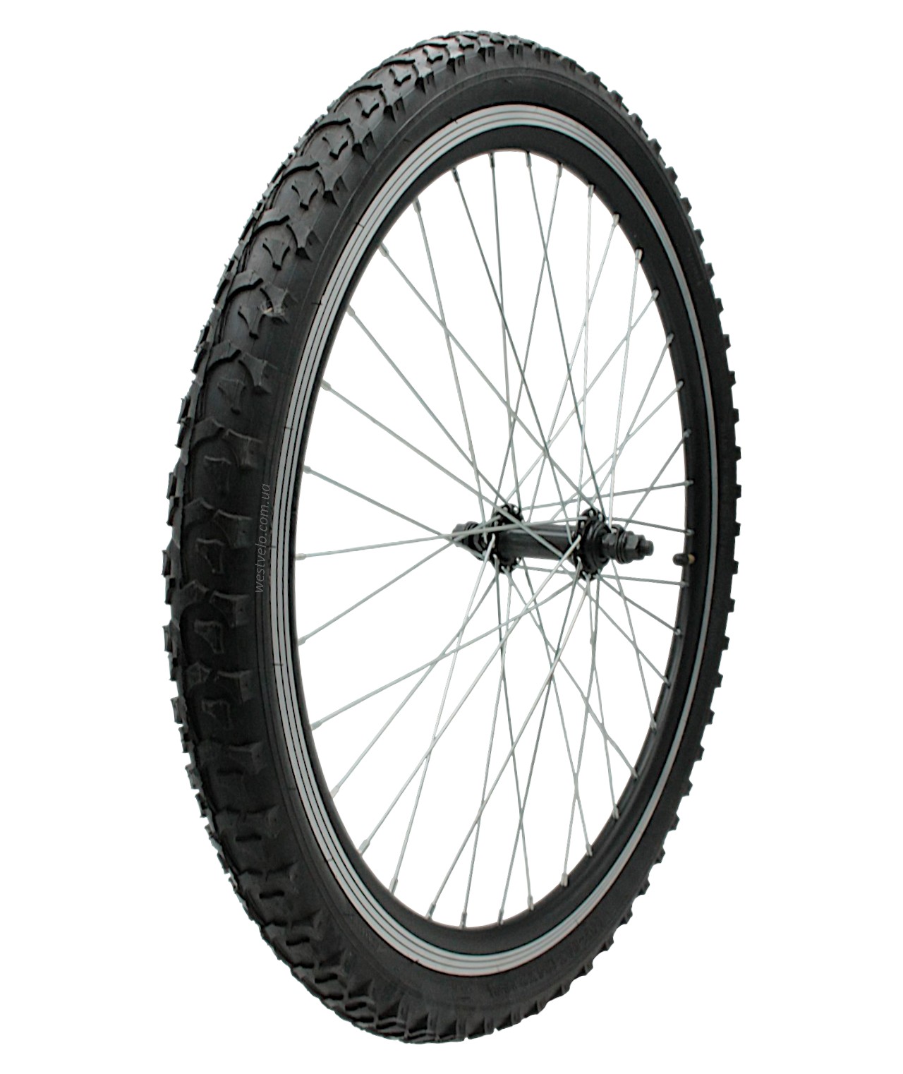 Колесо 24 перед, обід 2-ний чорний, втулка М чорна на віночках + камера і шипована покришка 24-2.125