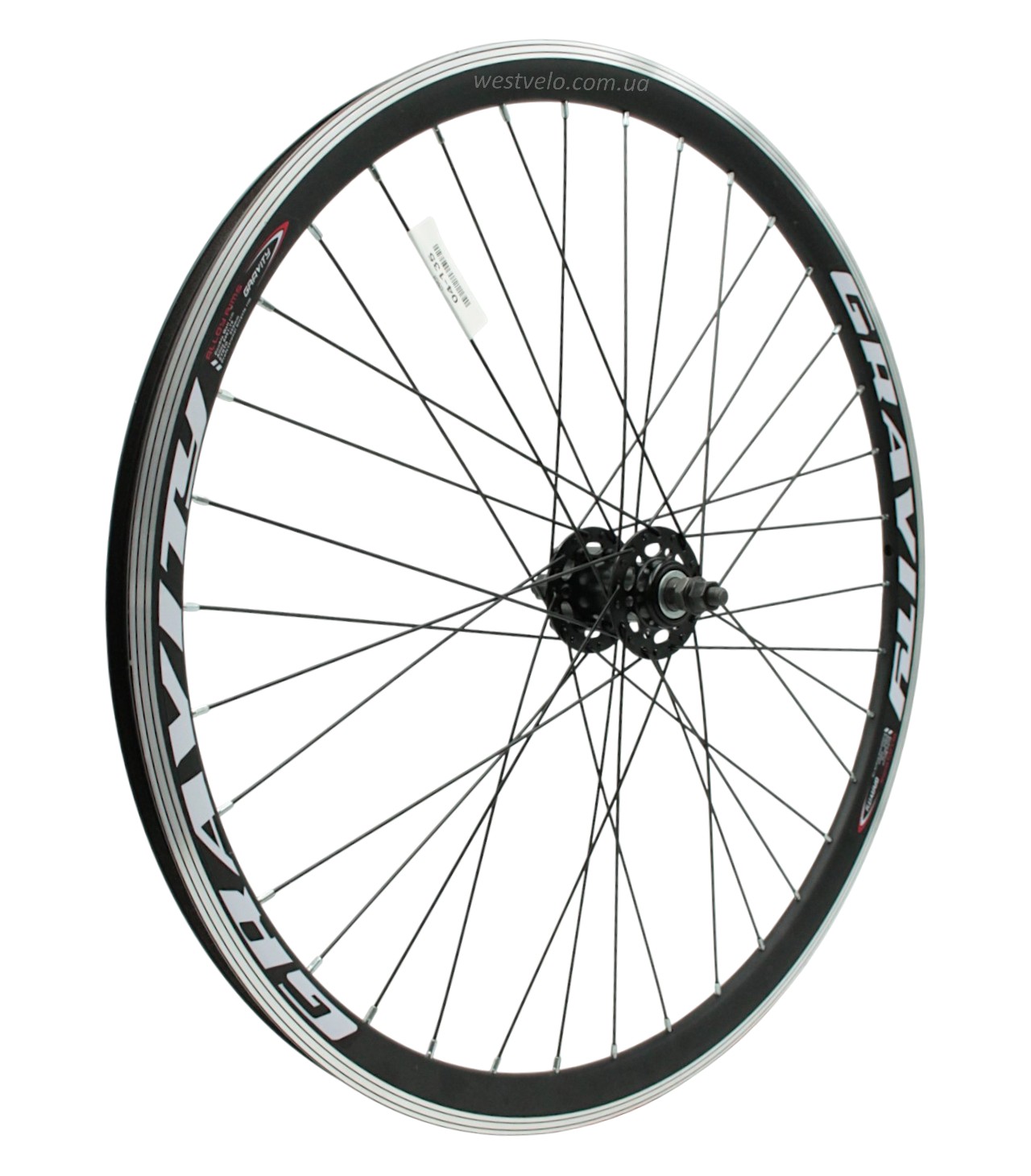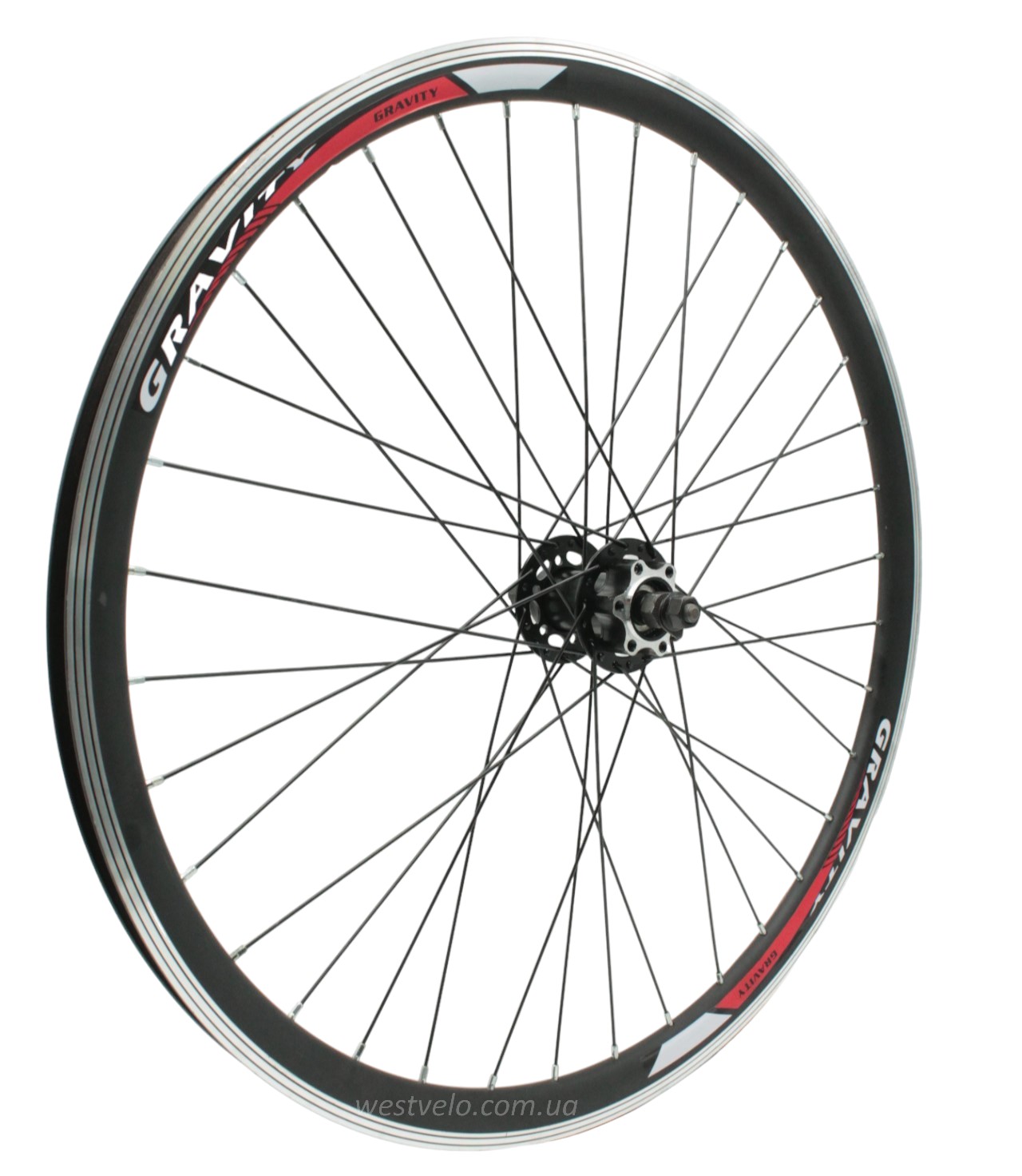 Колесо 26 перед, обід 2-ний чорний, втулка ST. SHUNFENG, диск 6 болтів, чорна спиця (Gravity)