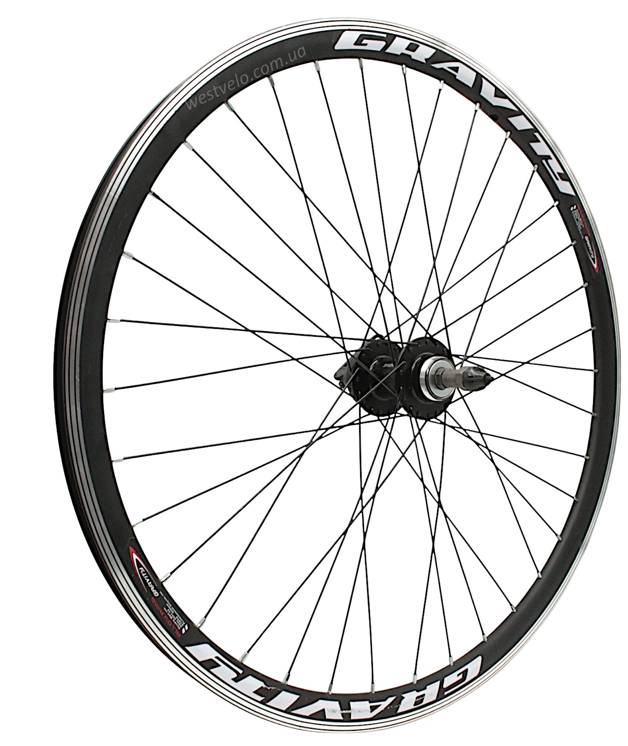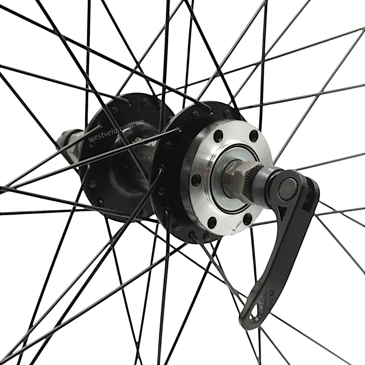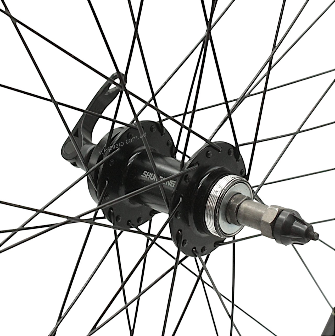 Колесо 26 зад, обід 2-ний чорний, втулка AL SHUNFENG, диск 6 болтів, ексцентрик, чорна спиця (SF-А210R)