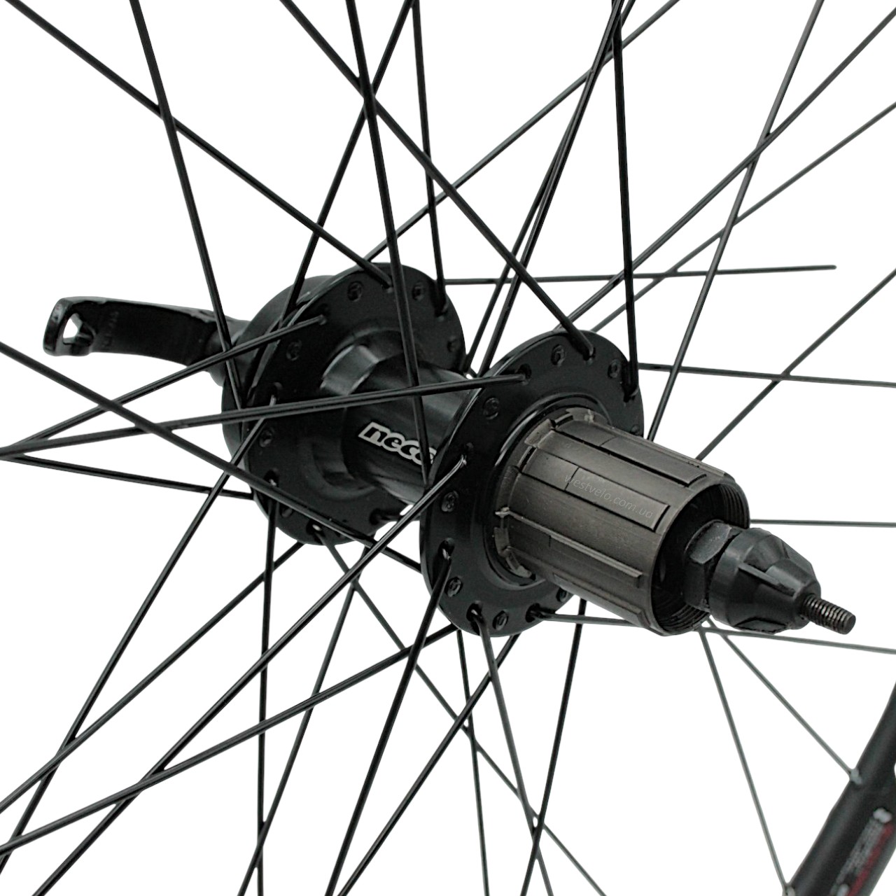 Колесо 27,5 зад, обід 2-ний чорний дисковий, втулка. AL. NECO на касету (8-10S), диск 6 бол, ексцентрик, чорна спиця (Gravity)