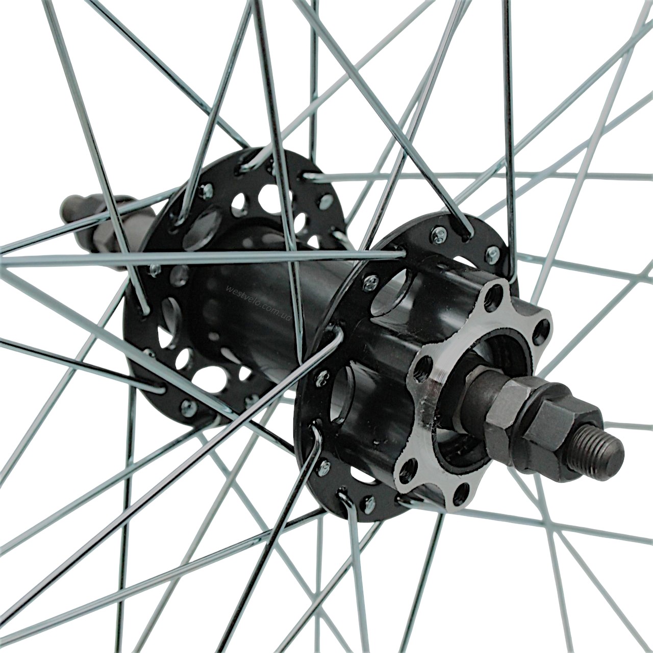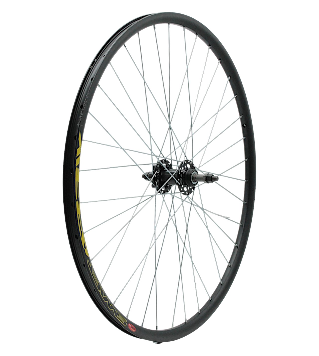Колесо 28-29 зад, обід 2-ний чорний дисковий, втулка ST. SHUNFENG, диск 6 болтів, чорна спиця