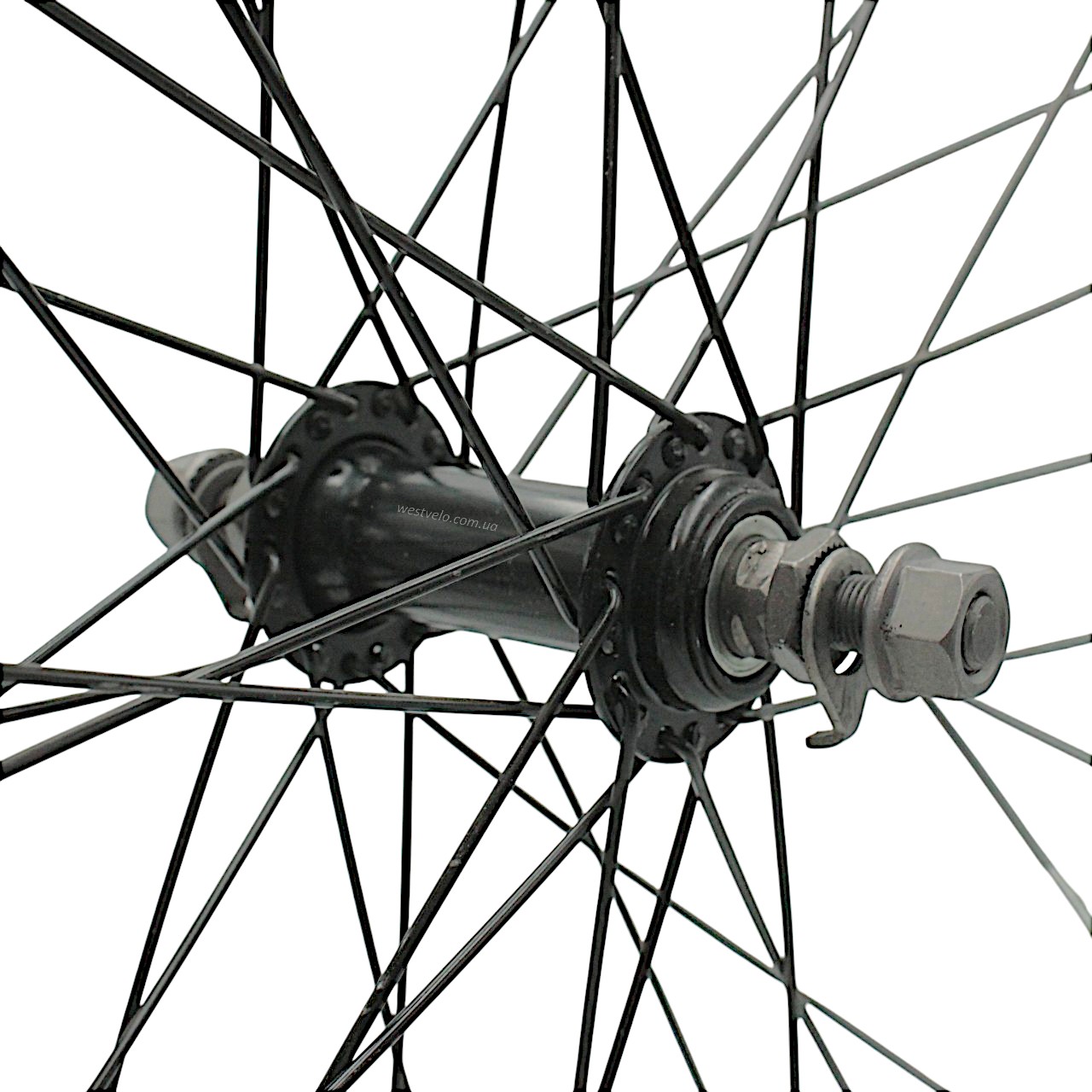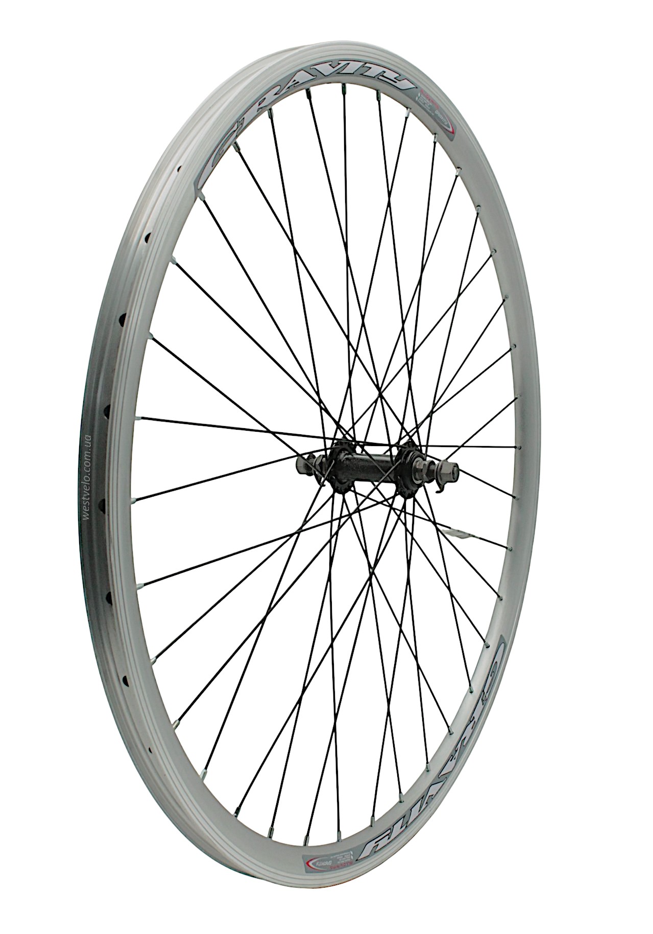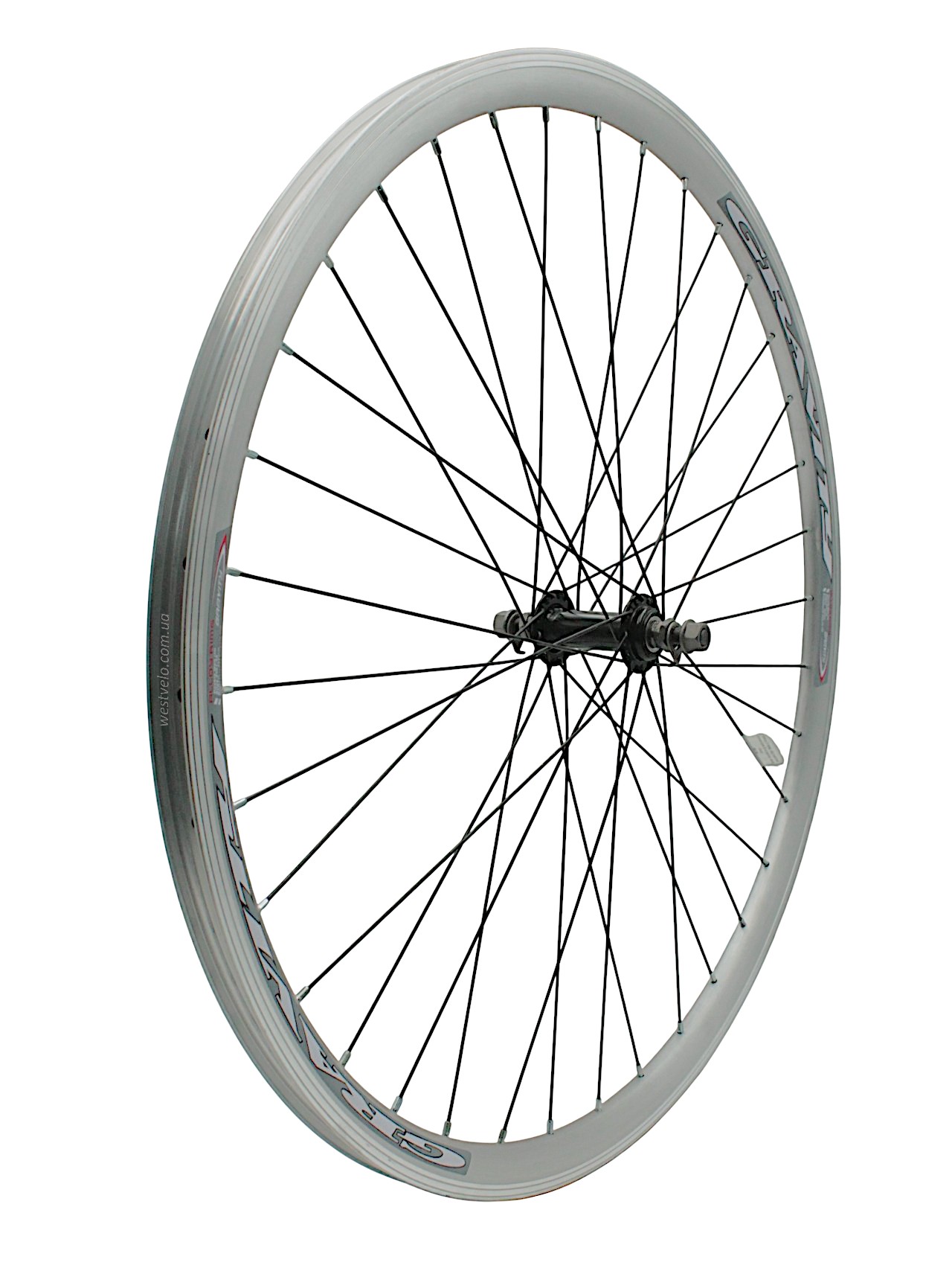 Колесо 28-29 перед, обід 2-ний сірий, втулка ST. на віночках чорна, чорна спиця