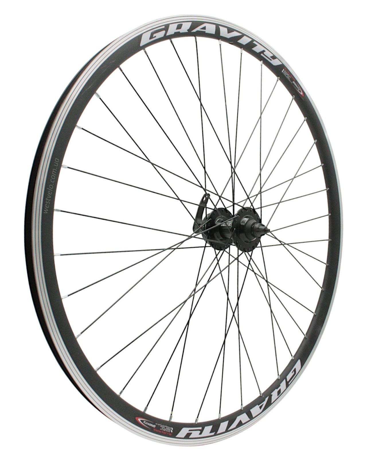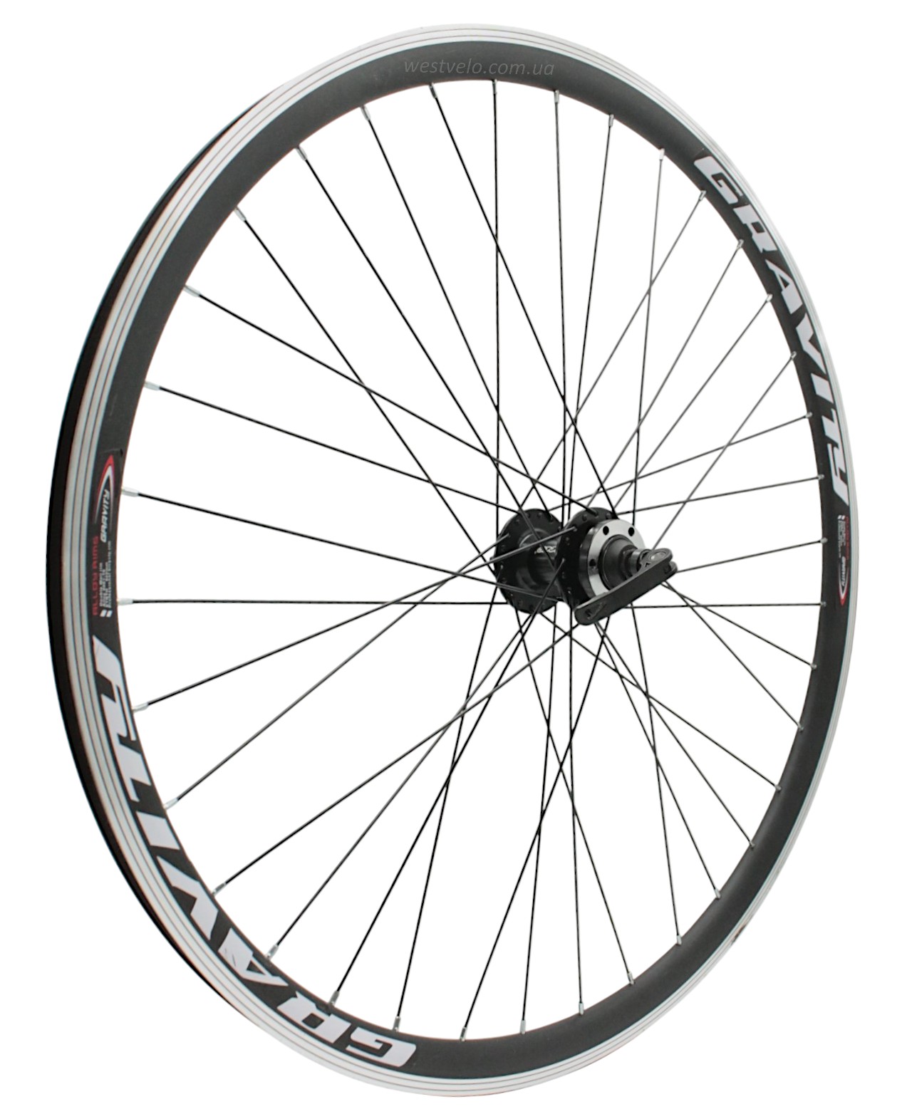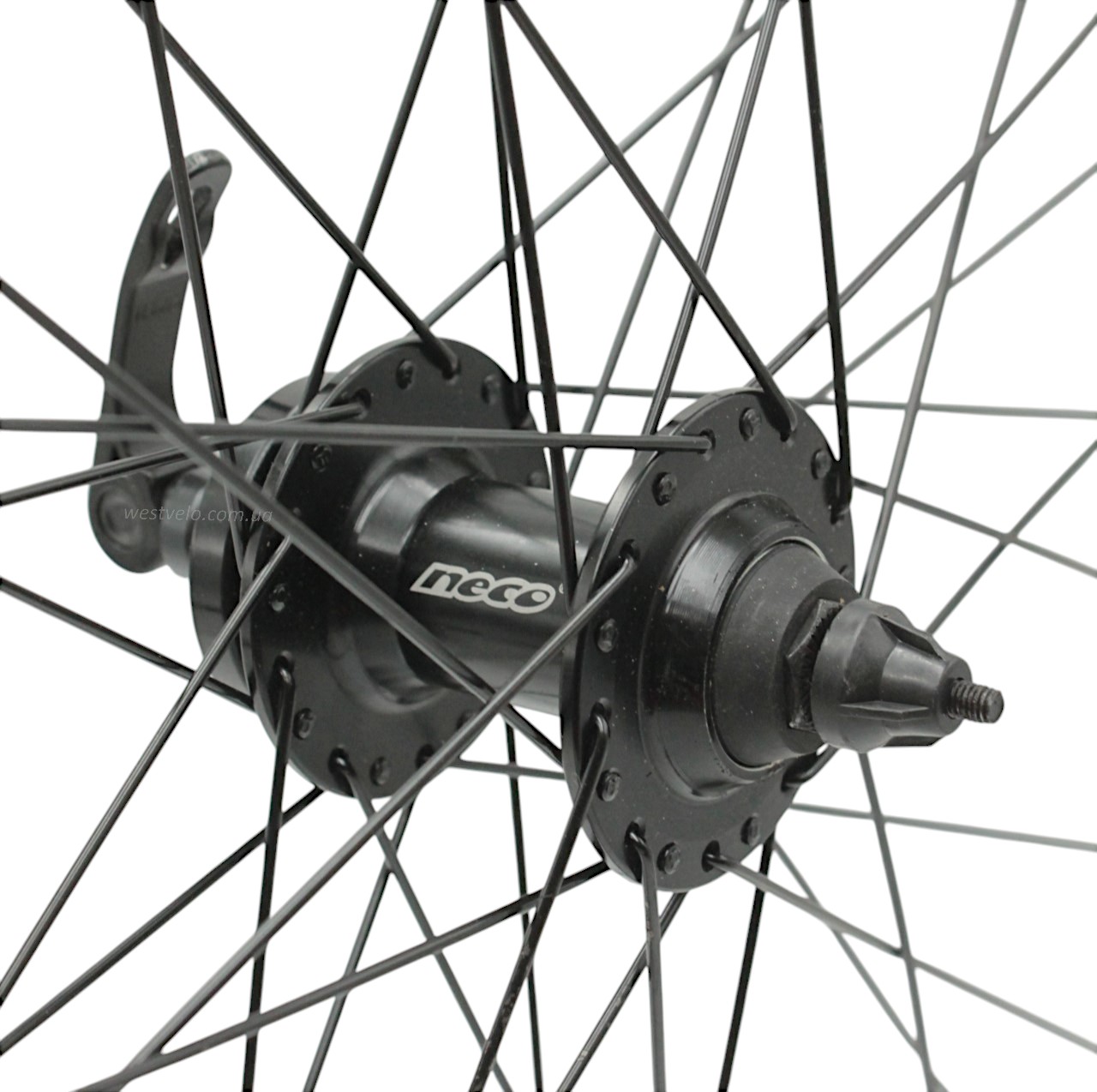 Колесо 28-29 перед, обід 2-ний чорний, втулка AL. NECO MS37F, диск 6 болтів,ексцентрик,чорна спиця (Gravity)