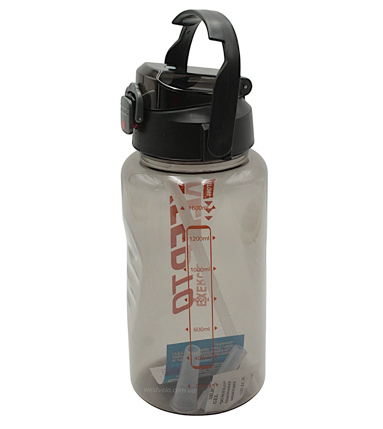 Фляга 1600 ml харч.пластик, KEEPTO EXERCISE, (для тренувань) з трубкою, чорна