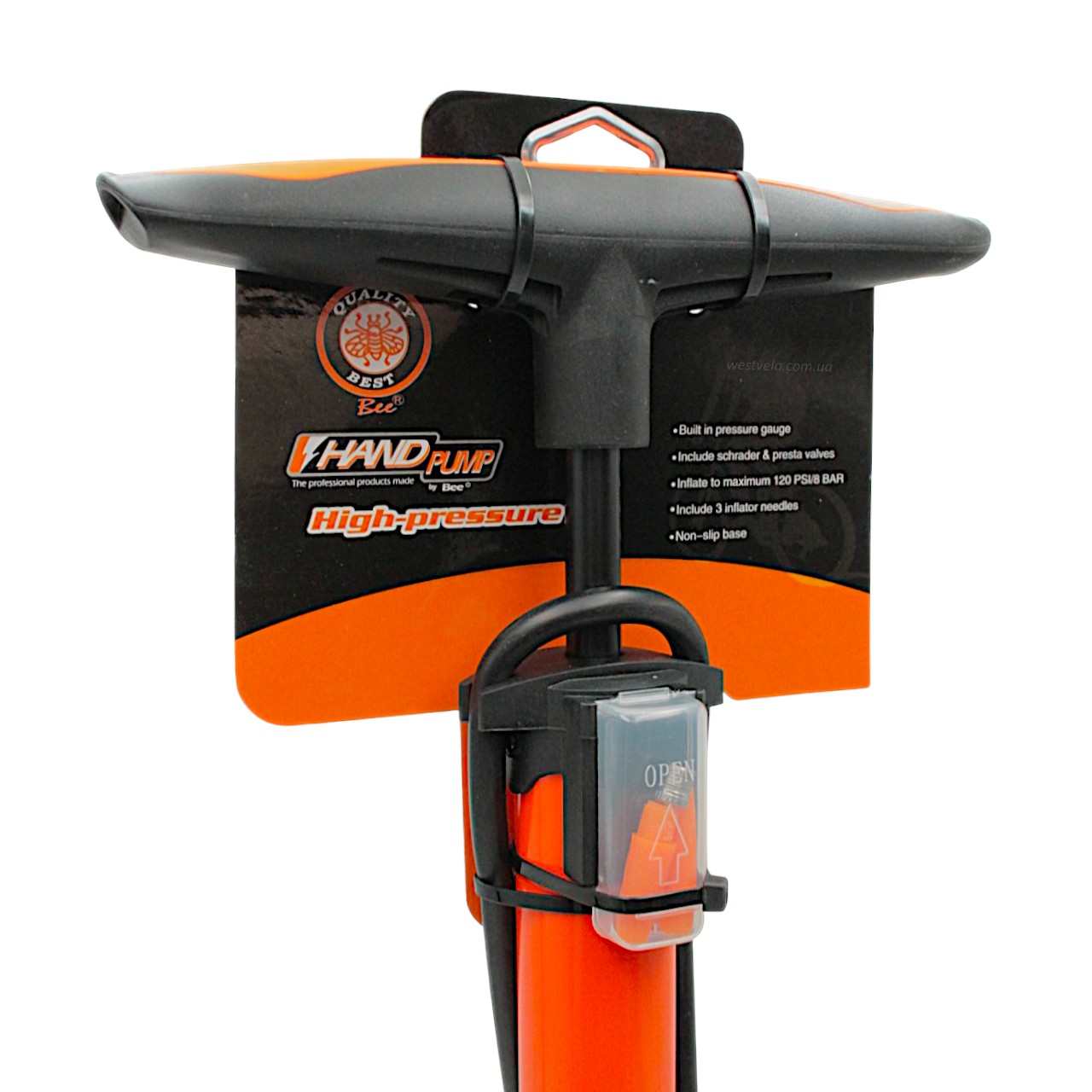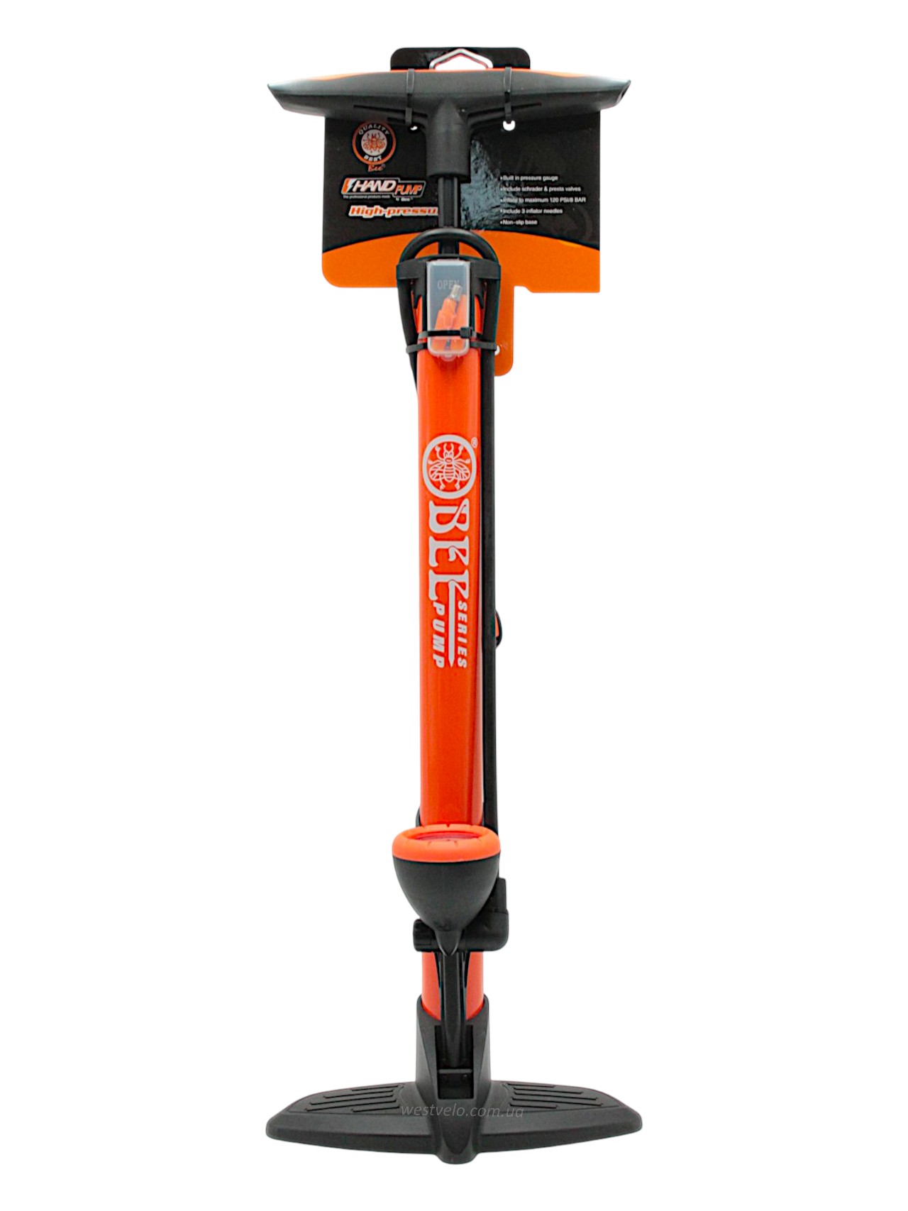 Насос авто з манометром BEE pump (ZF-030) сталевий помаранчевий, 2-ний наконечник (AV/FV)